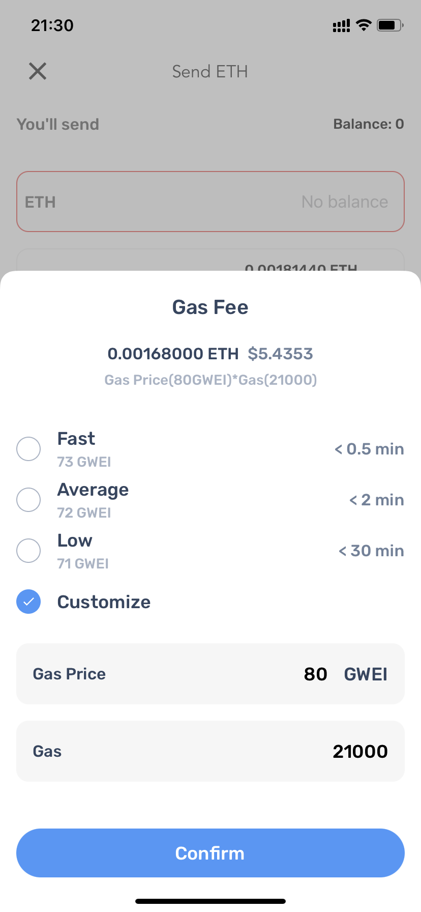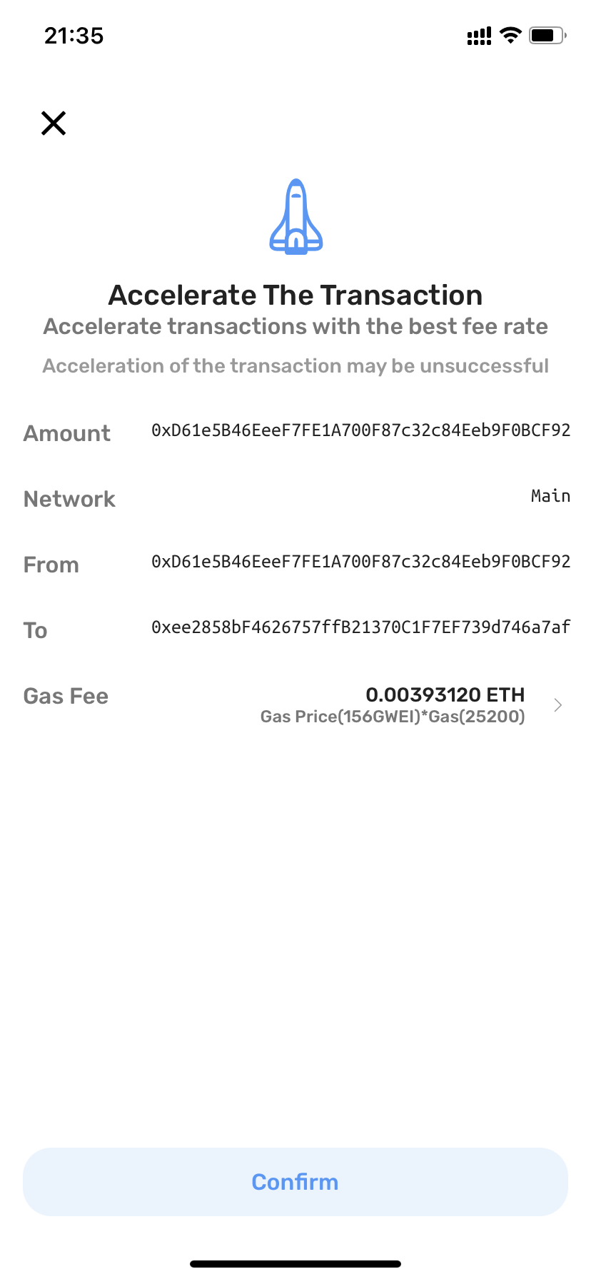 - More detail about ETH transaction acceleration and cancellation.You can decide gas fee on yourself;