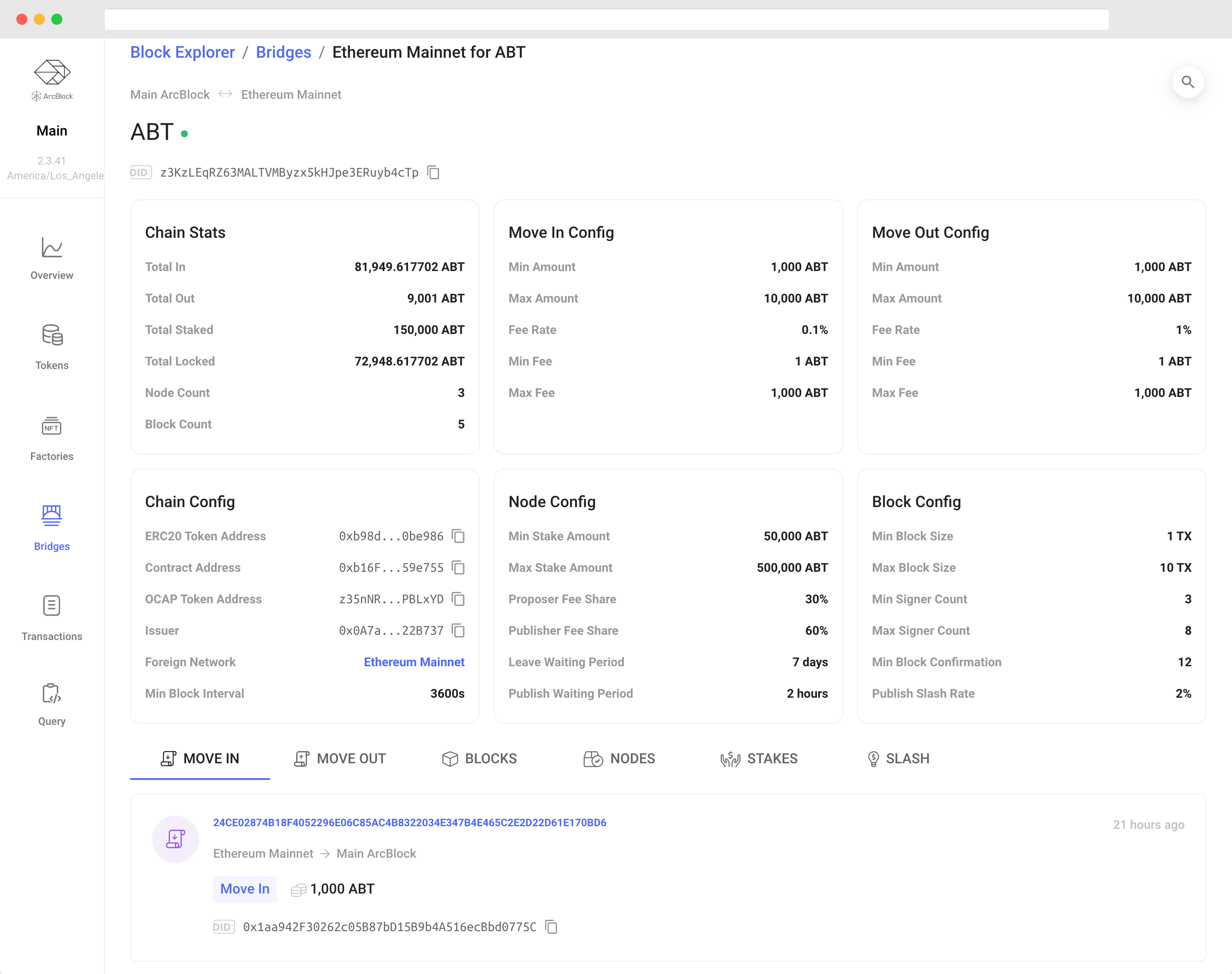ArcBridge is the name of the service which currently bridging up ArcBlock’s asset ‘Main’ chain and Ethereum Mainnet. And a test deployment also bridges ArcBlock’s asset ‘Beta’ chain and Ethereum Rinkeby. ArcBlock’s Block Explorer has been updated and can display all status and activities of the rollup chain status and relevant transactions.