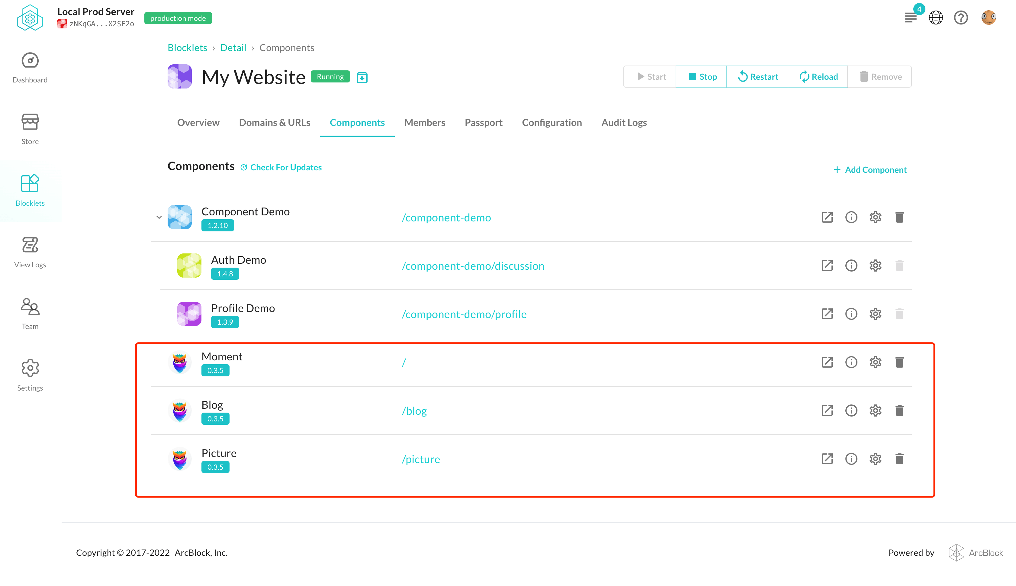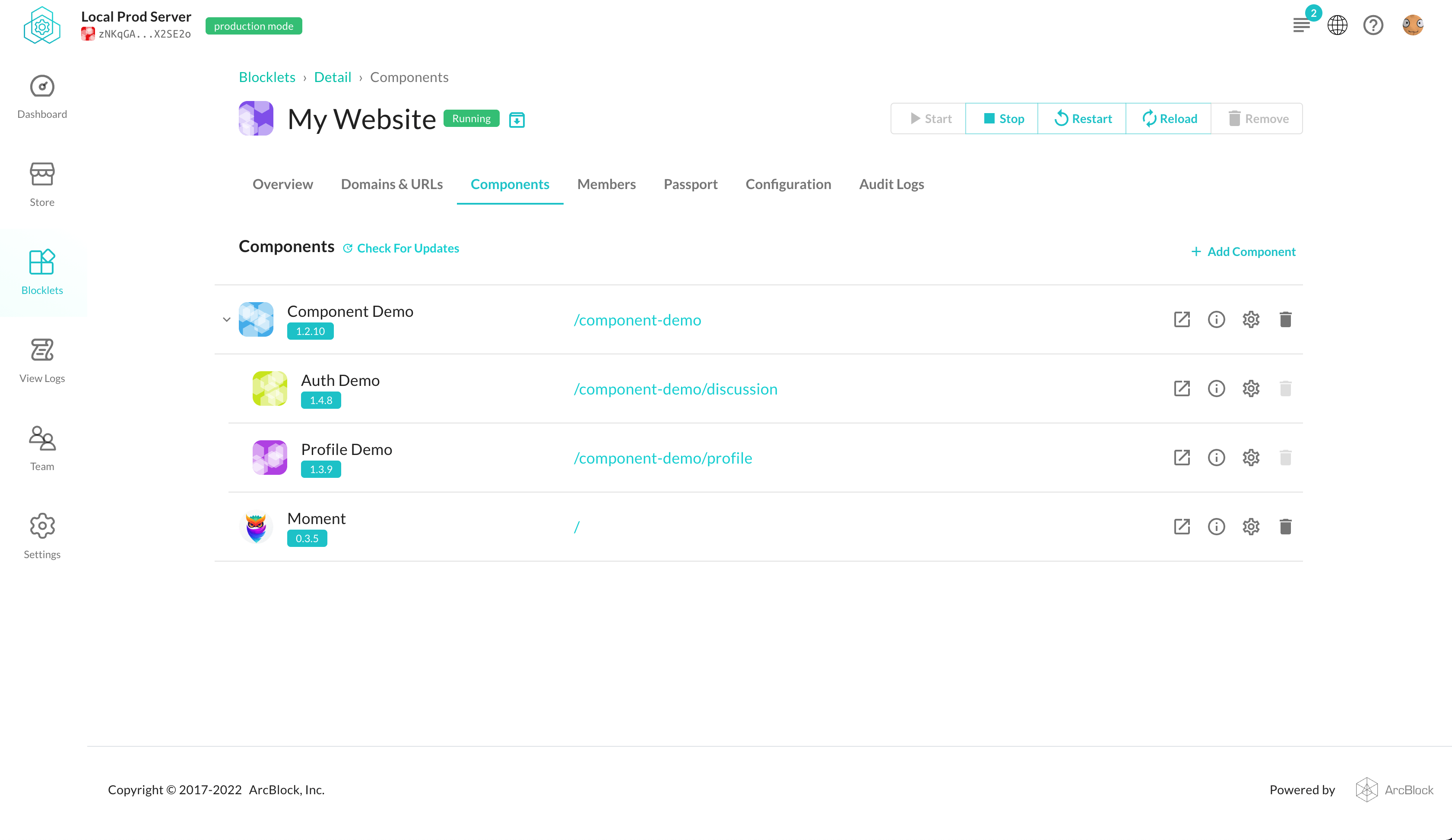 blocklet dev add/removeto add or remove components in blocklet.yml - Support for resetting installed Blocklets using
