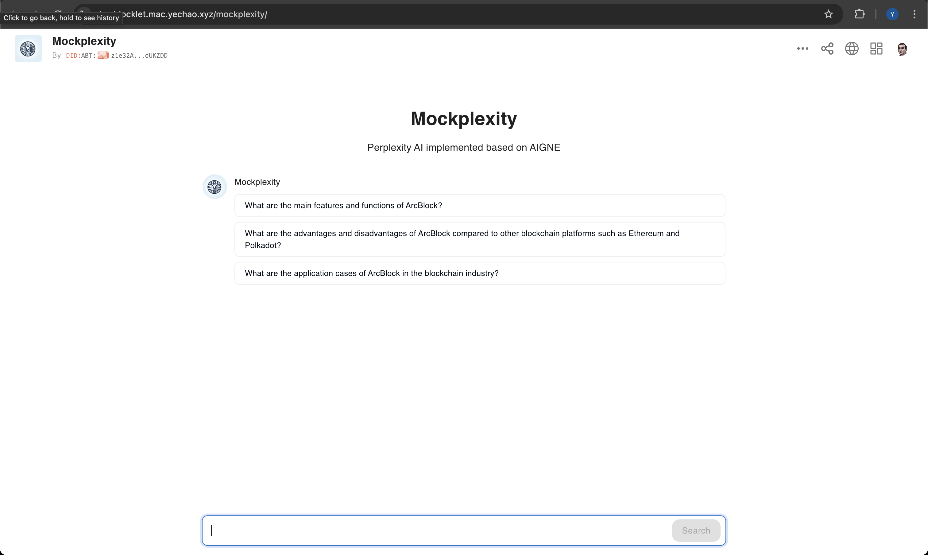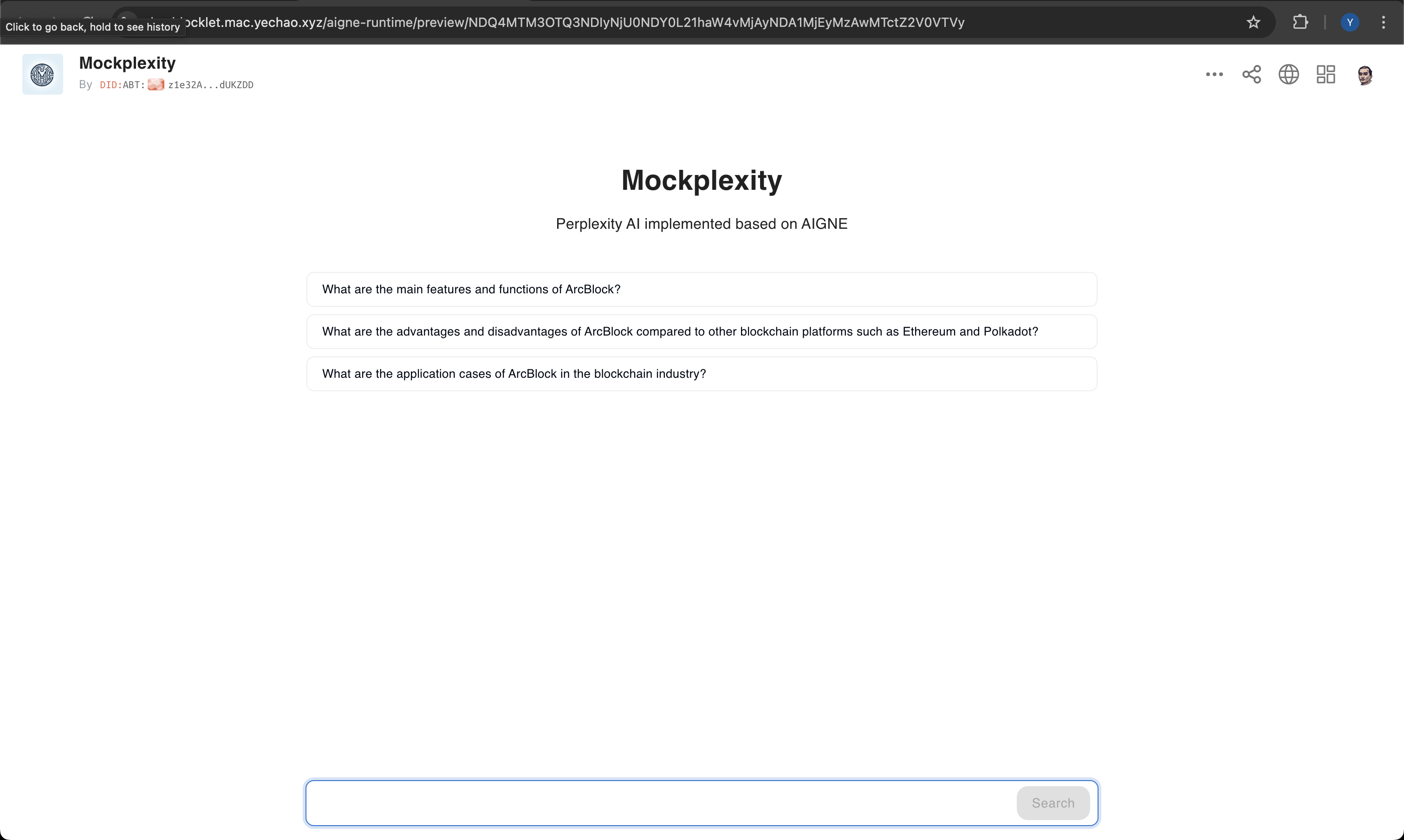 The following is the page where AIGNE Runtime runs an AIGNE application.