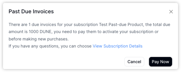 <OverdueInvoicePayment subscriptionId={data.id} onPaid={() => console.log('Paid successfully')} />- 自定义模式