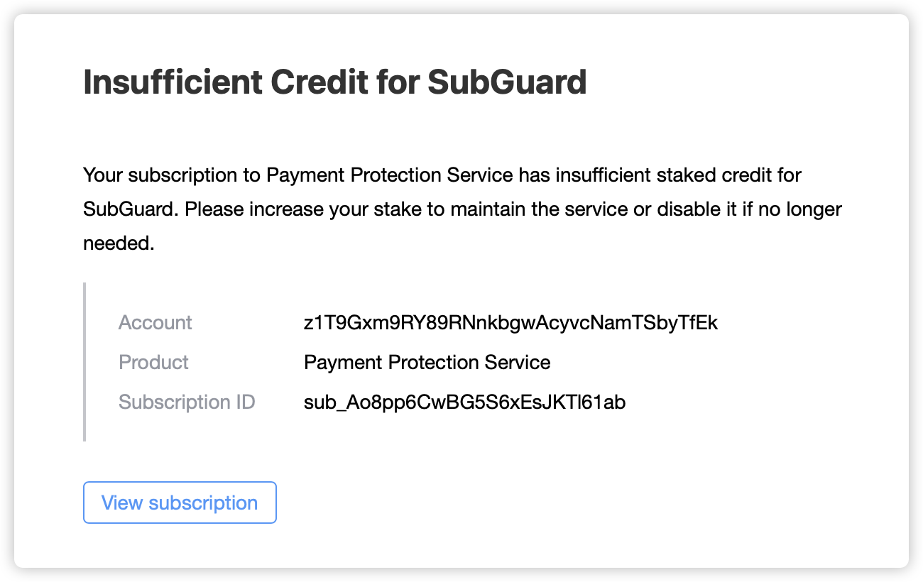 - 开启订阅守护服务后,如果质押金额不足时,系统会发送通知,请及时关注订阅状态的相关通知。