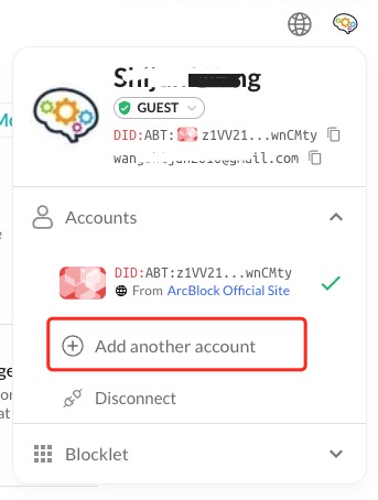 2. 点击 “Add another account”,然后紧接着选择 “Add Arcblock Launcher Account”#