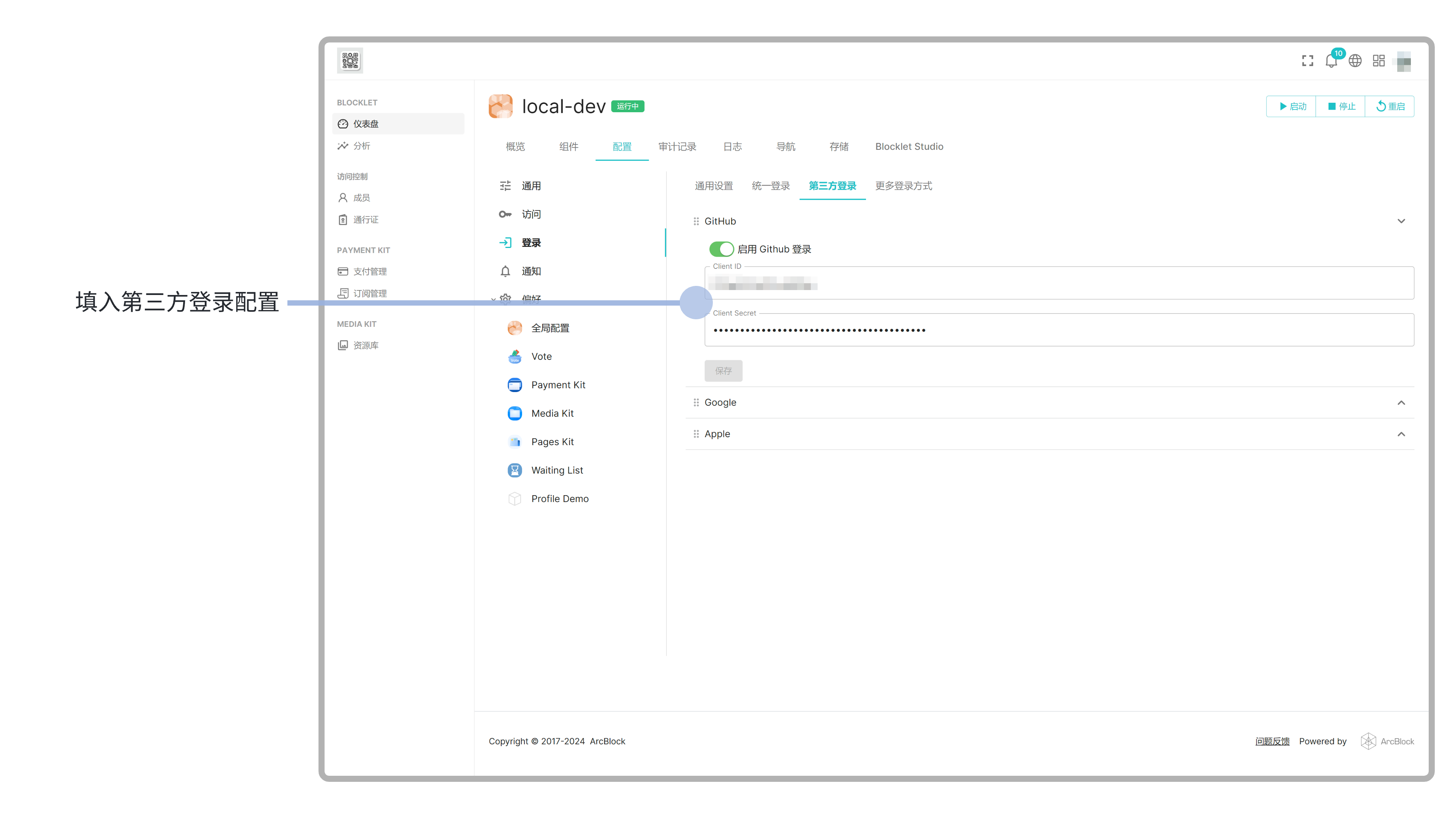 目前支持 Github,Apple,Google 三种第三方登录账号(更多的支持正在适配中)