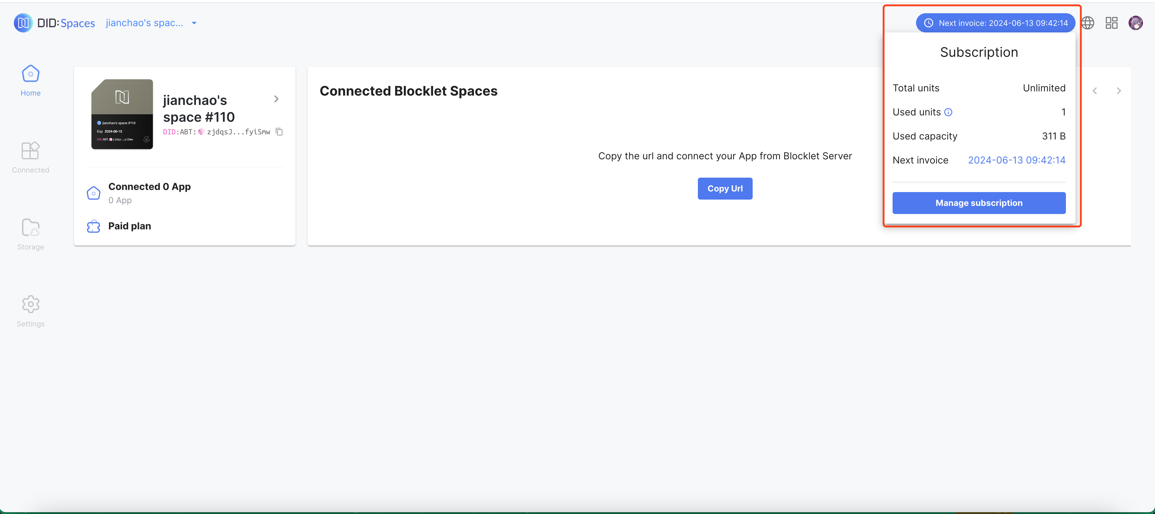 现在用户订阅 DID Space 不再是固定价格,而是按照你每天的实际使用的量(单位为 单元)来计费,需要了解按量付费的详细规则,可以查阅我们的定价政策。