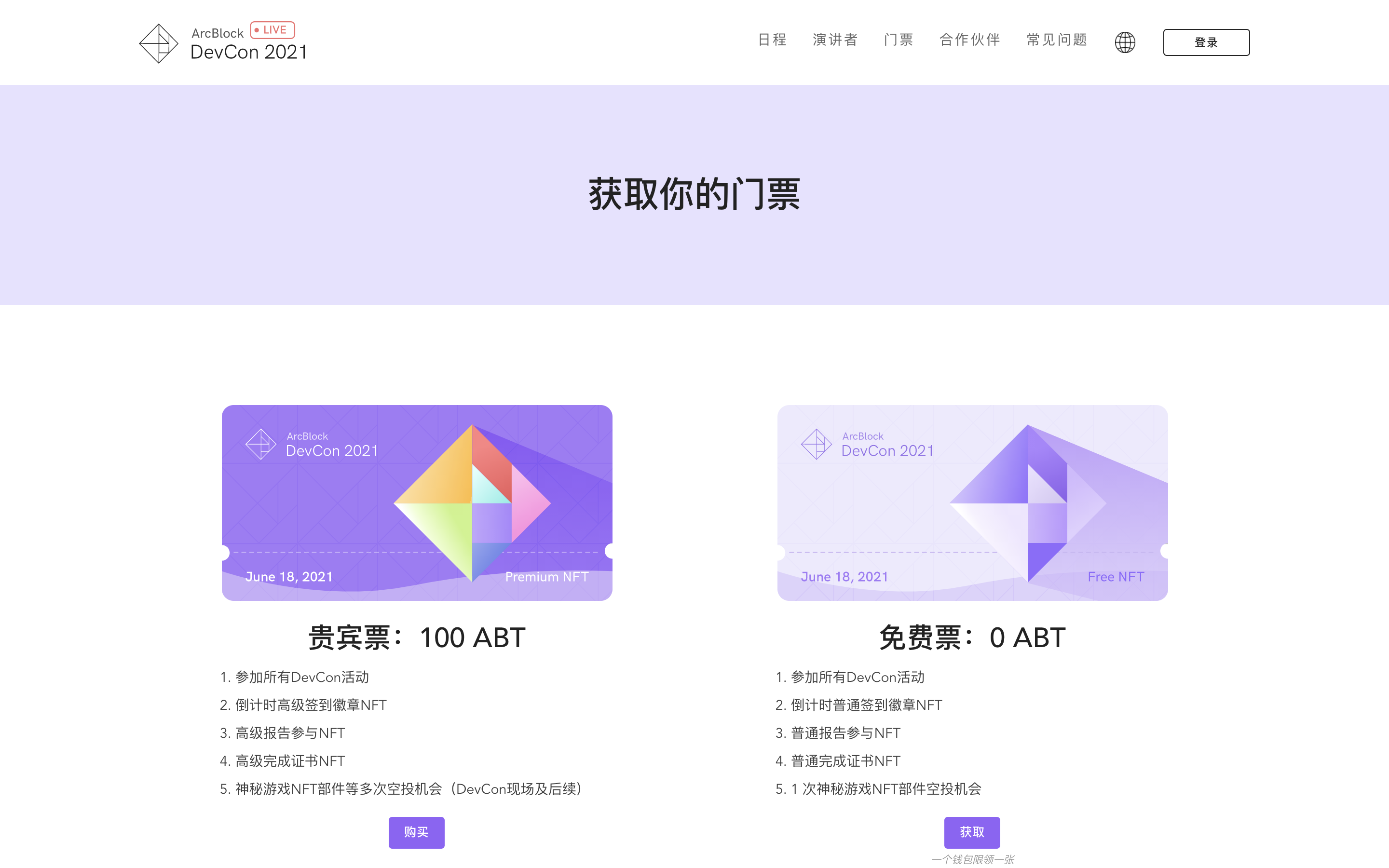 所有参会者须下载使用钱包扫码获取免费票,或用原生 ABT 购买贵宾票,享有下列各权益: