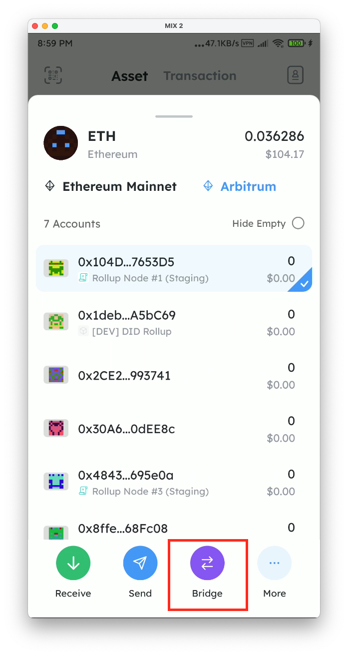 这个版本我们增加了对 Arbitrum Layer 2 的支持,当你打开 Arbitrum 链之后,支持一键发起 Arbitrum Bridge 操作,方便快捷。