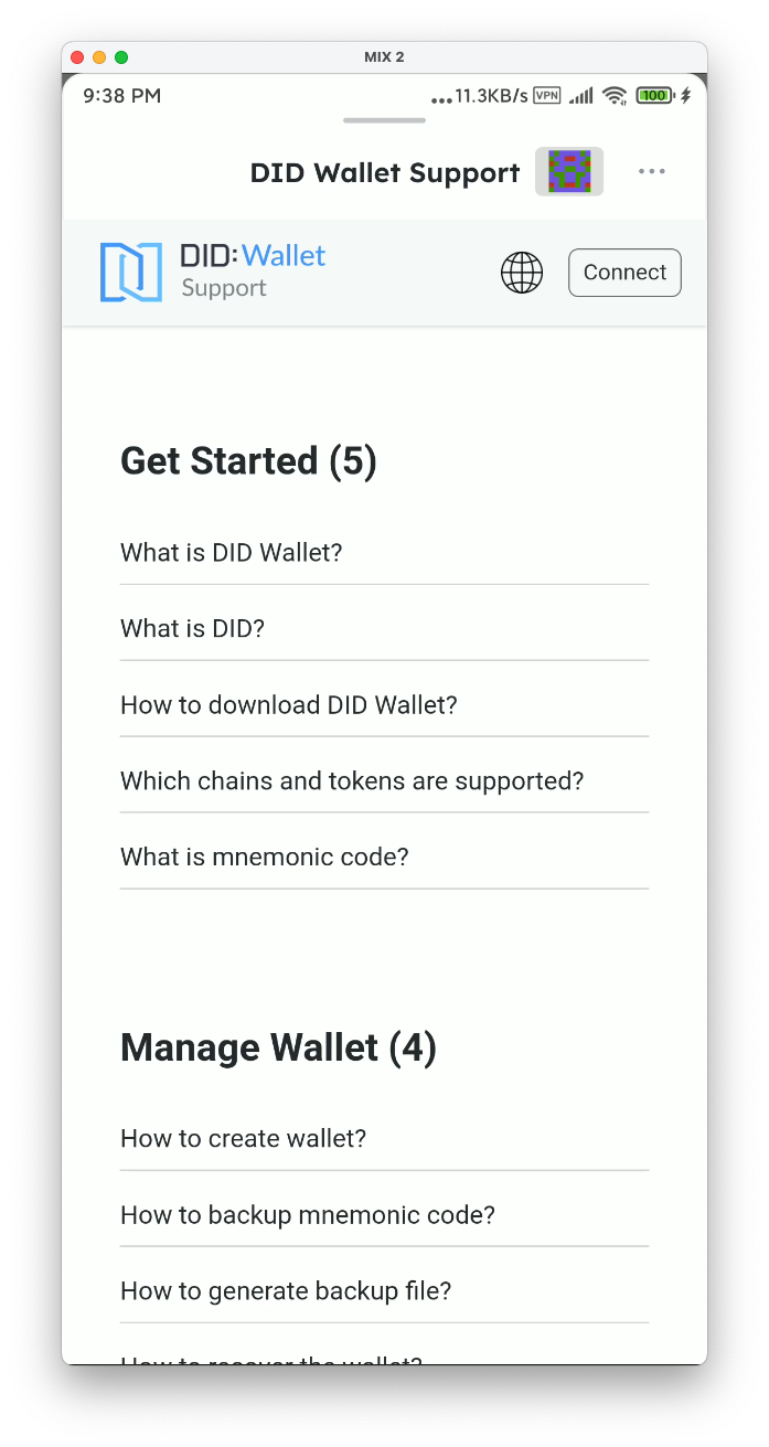 DID Wallet 帮助支持: https://support.didwallet.io/
