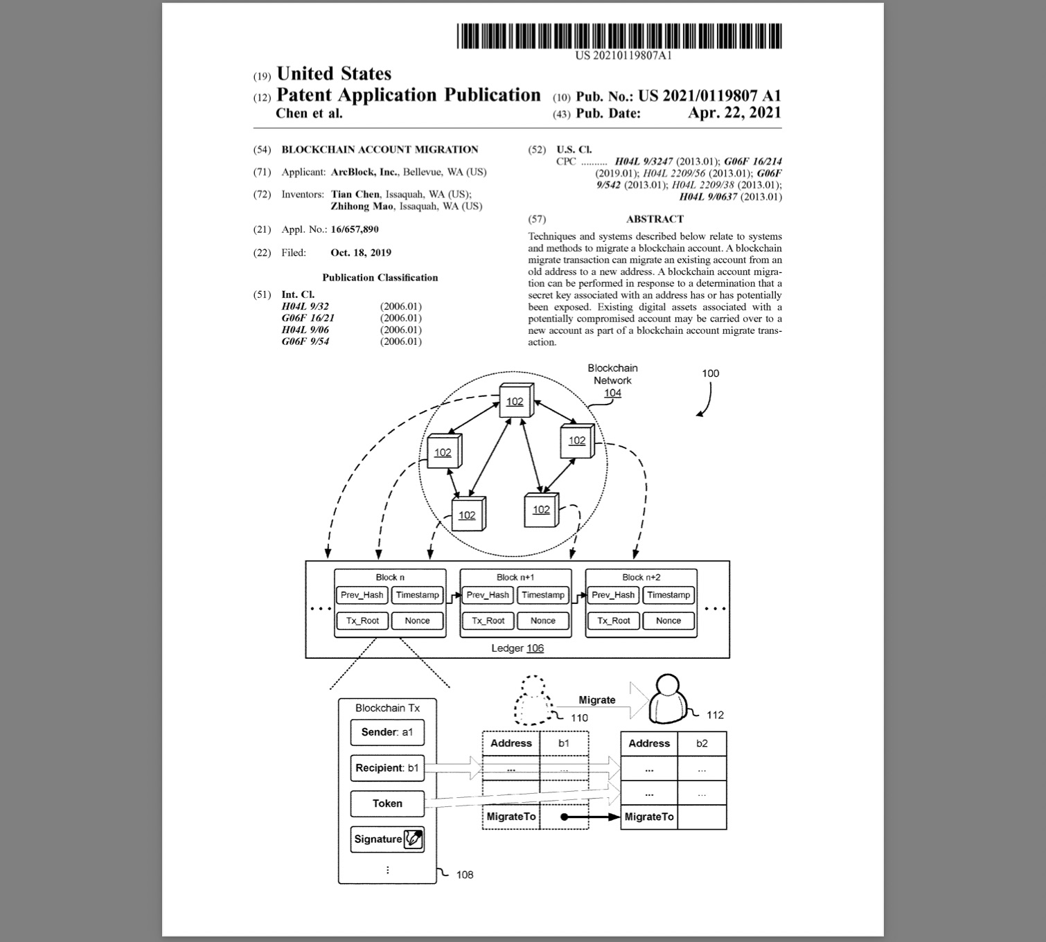 我们收到美国专利及商标局(USPTO)的通知,我们的又一项区块链基础技术专利“区块链账户迁移(Blockchain Account Migration) ”获得了批准。 这和我们第一项获批的专利 “Blockchain Delegation”相互呼应,这项专利技术解决的问题正是当今区块链普遍存在私钥控制账户(以太坊中称为EOA,Externally Owned Account) 安全性问题,在未来具有深远的意义。