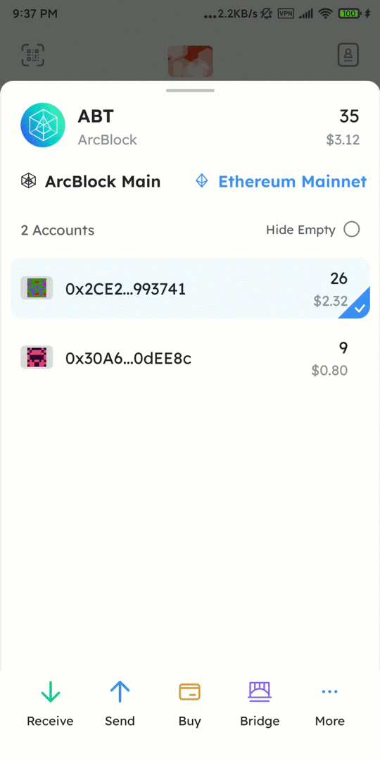 - 将当前的链从 ArcBlock Main 切换到 Ethereum Mainnet,切换到 Ethereum Mainnet 之后,底部的
