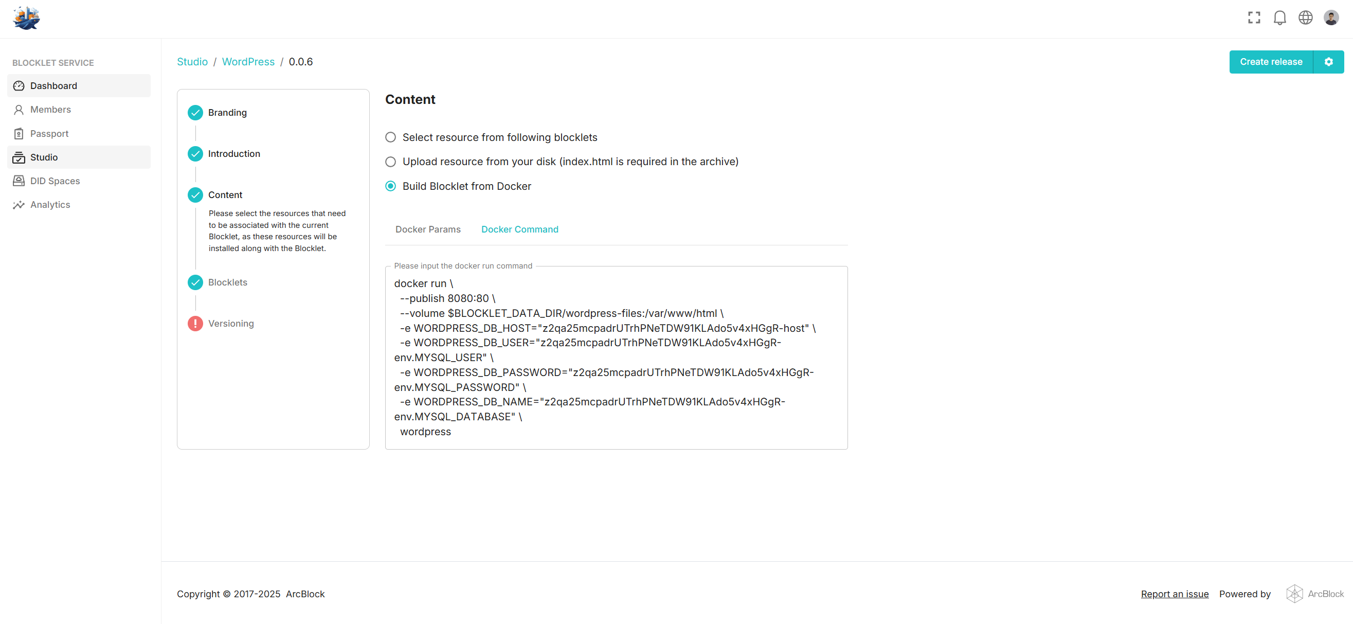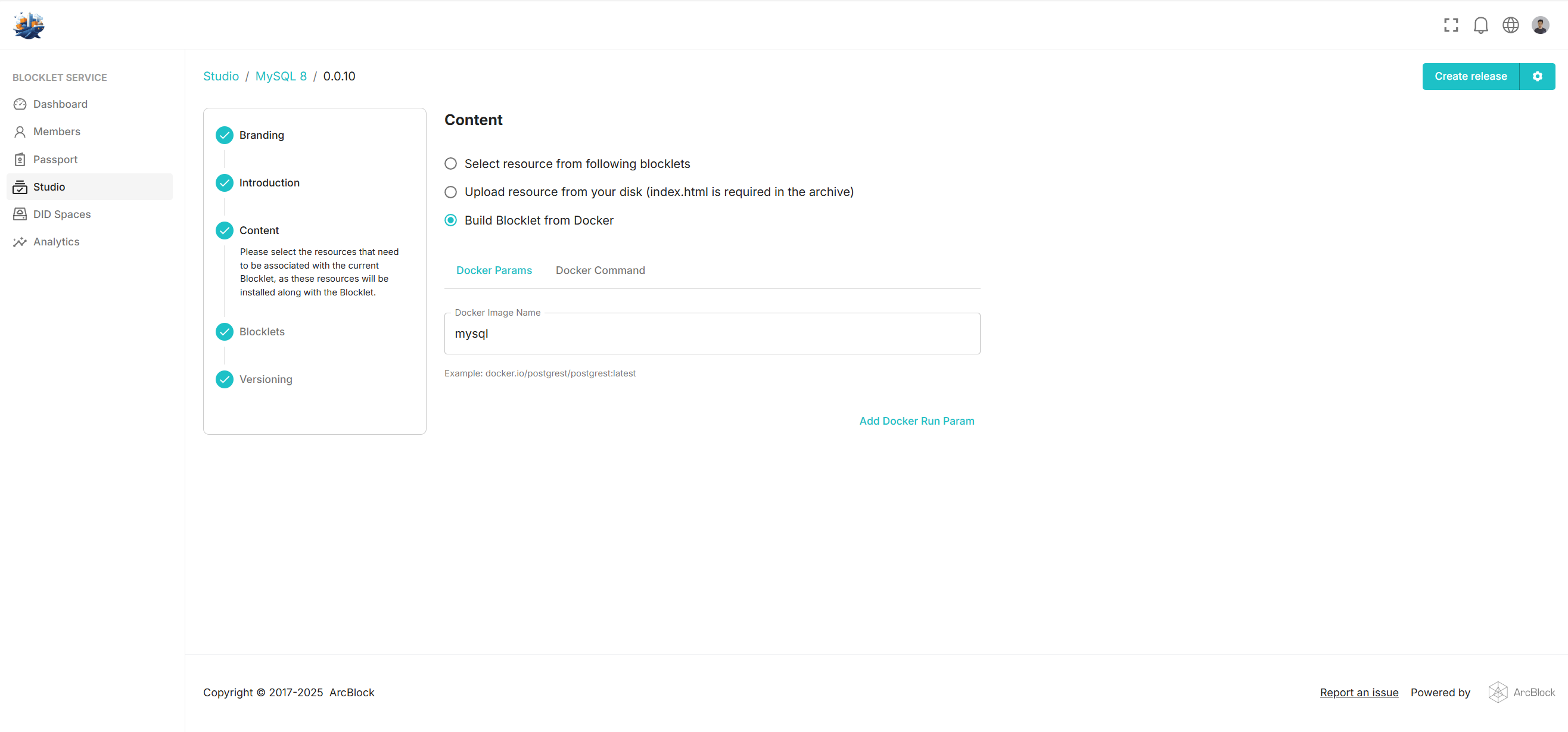 Then in the Content section, we select Build Blocklet from Docker: