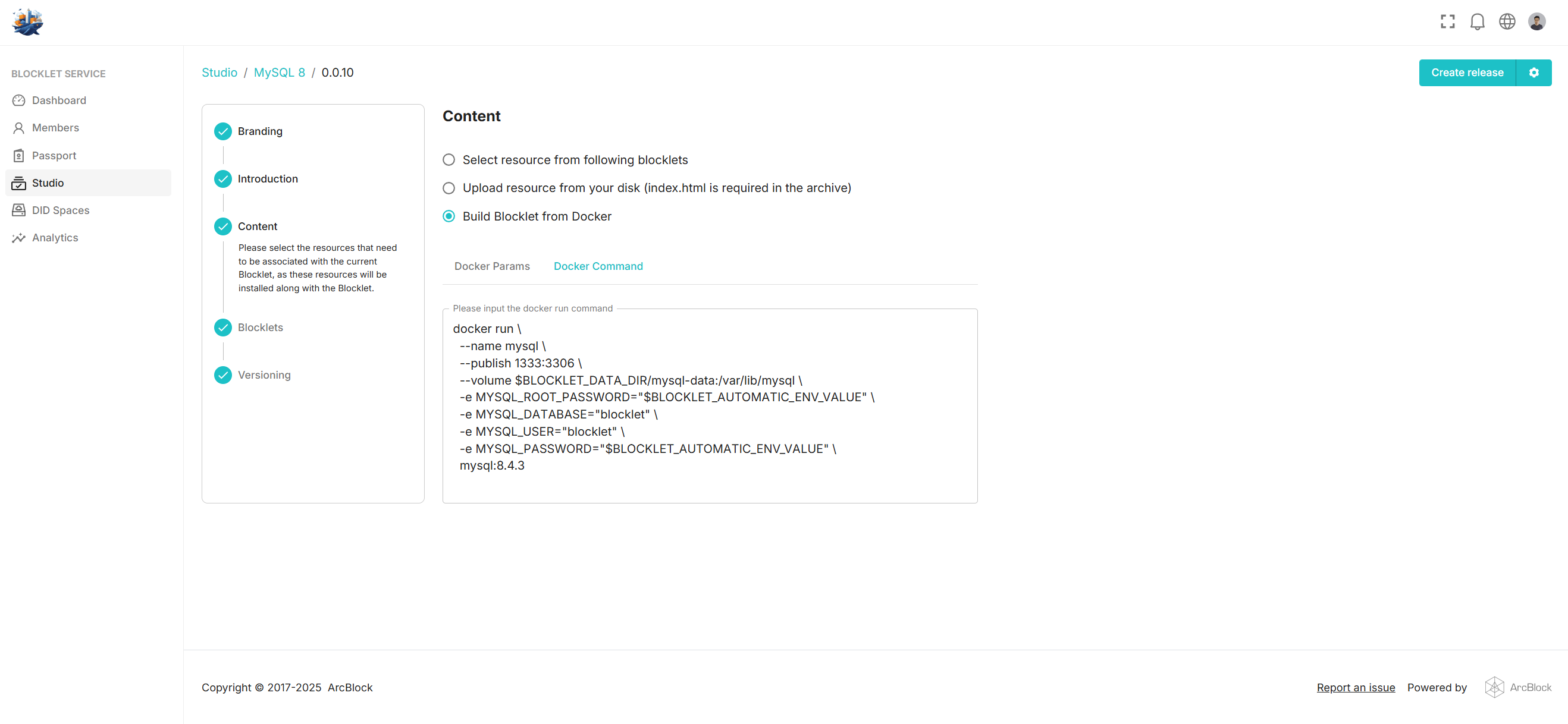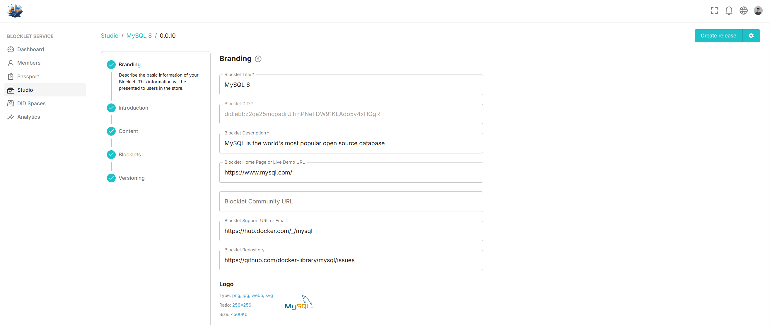 Creating a MySQL Blocklet is straightforward.