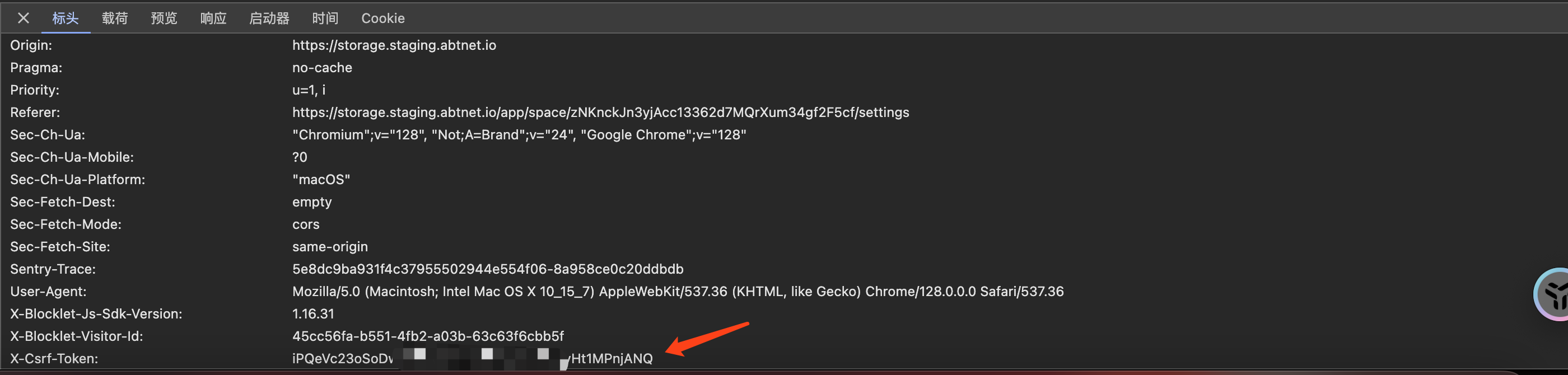 await api.put(...);After successful access, you will be able to see the csrf-token in the request header, just like this: