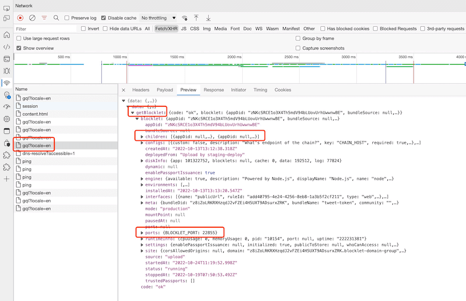 If you need to check for other reasons (such as troubleshooting), you can open the developer tools in your browser, visit the Server Dashboard -> Blocklet details page, and view it in the getBlocklet GQL interface