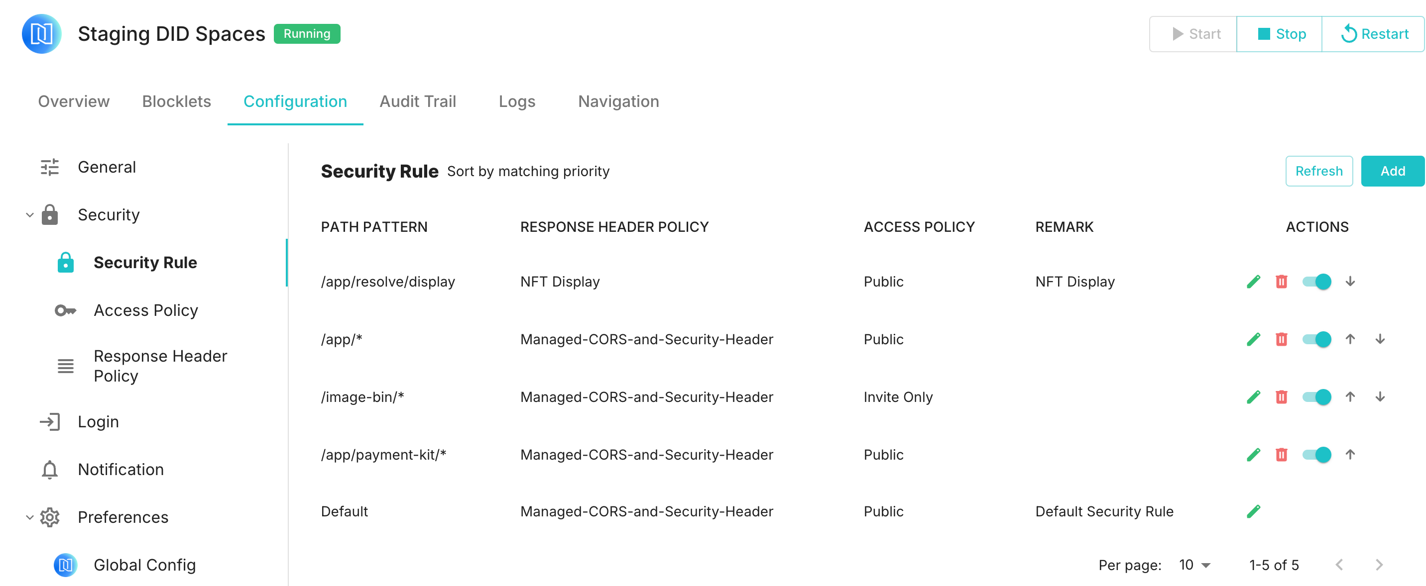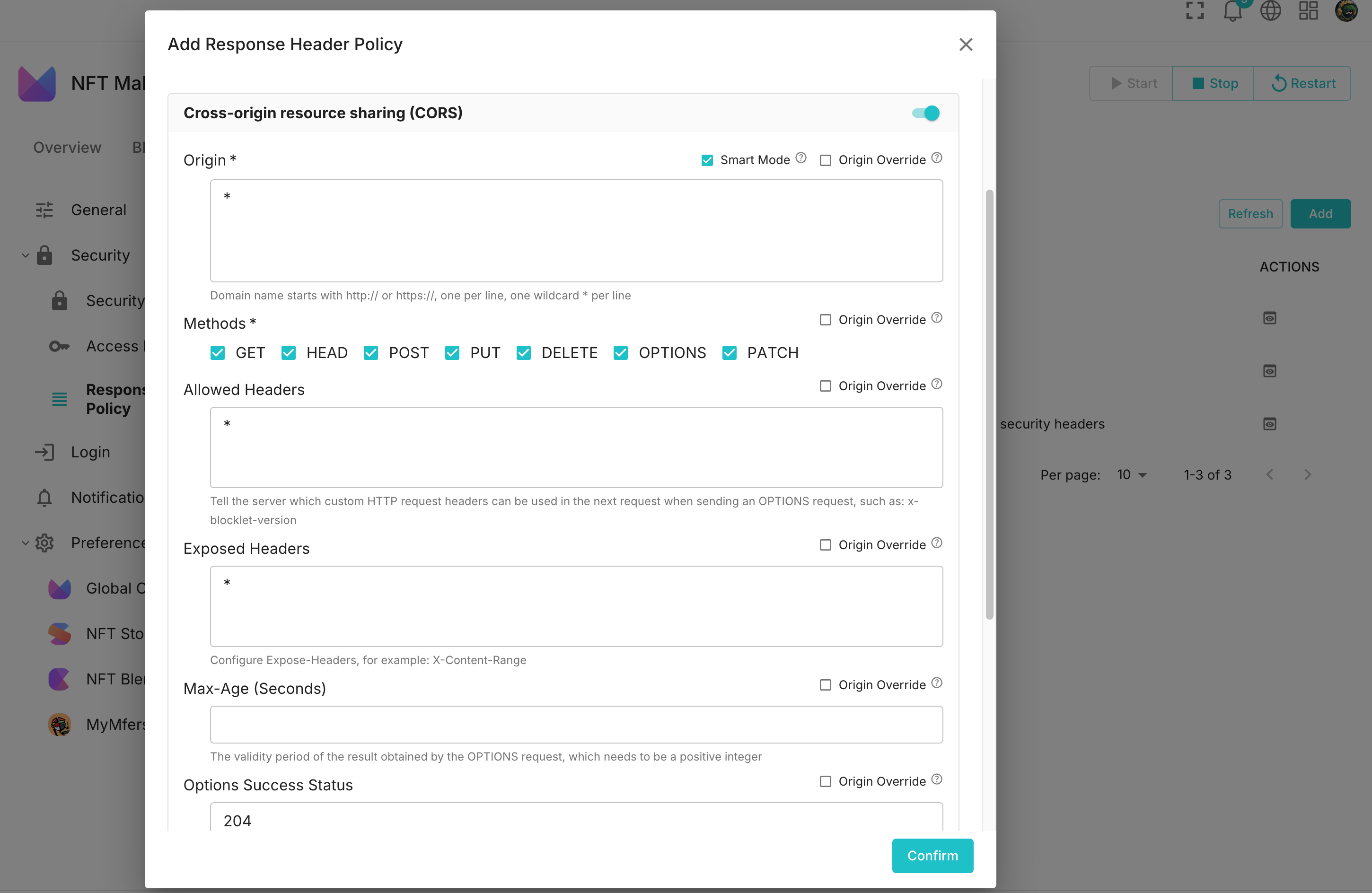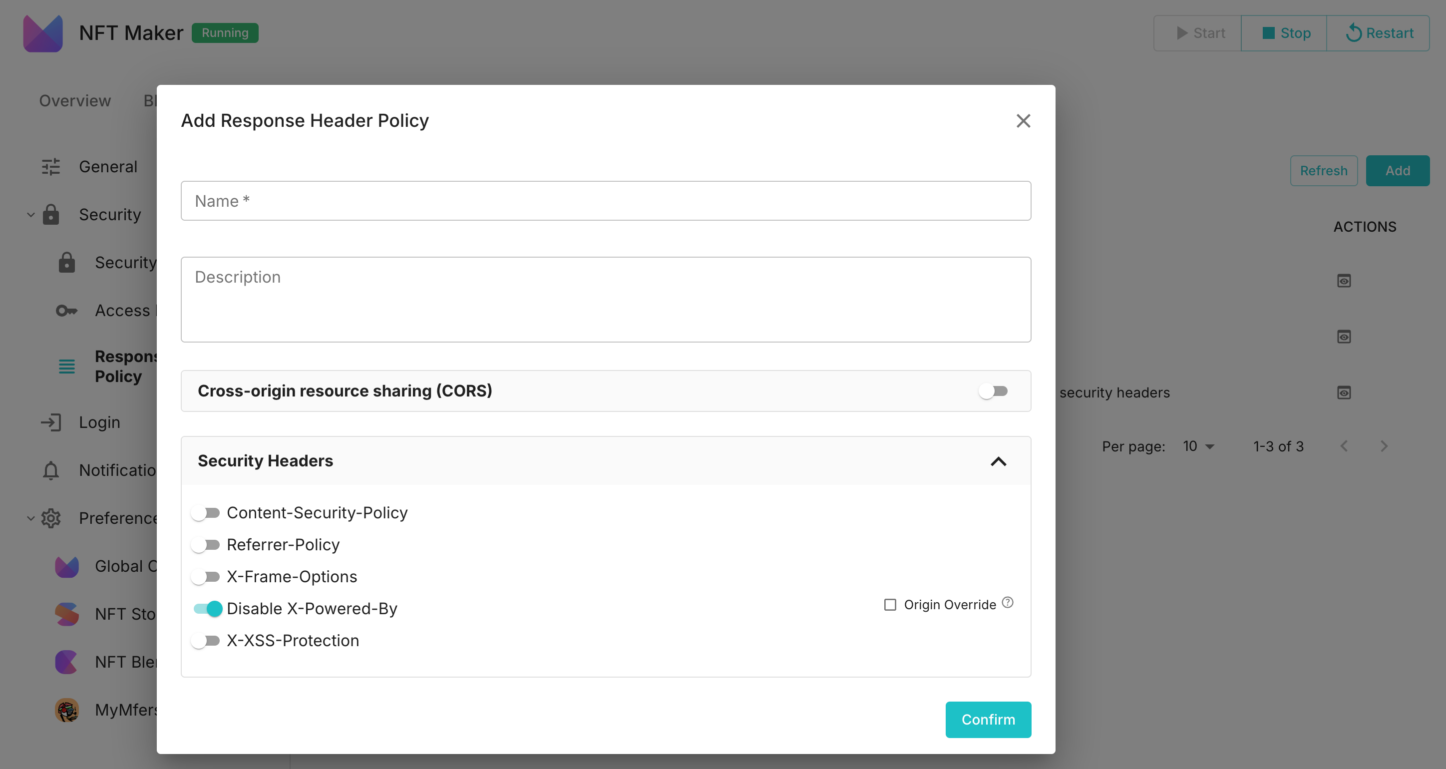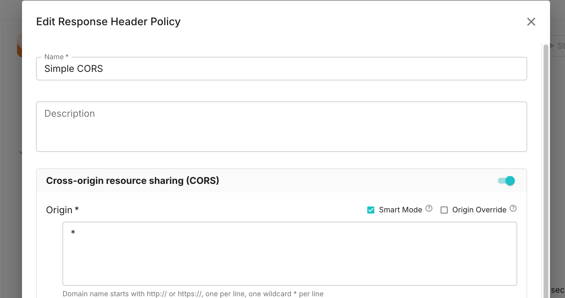 - Response header policy: A unified approach to adding custom headers in response to requests based on security requirements.