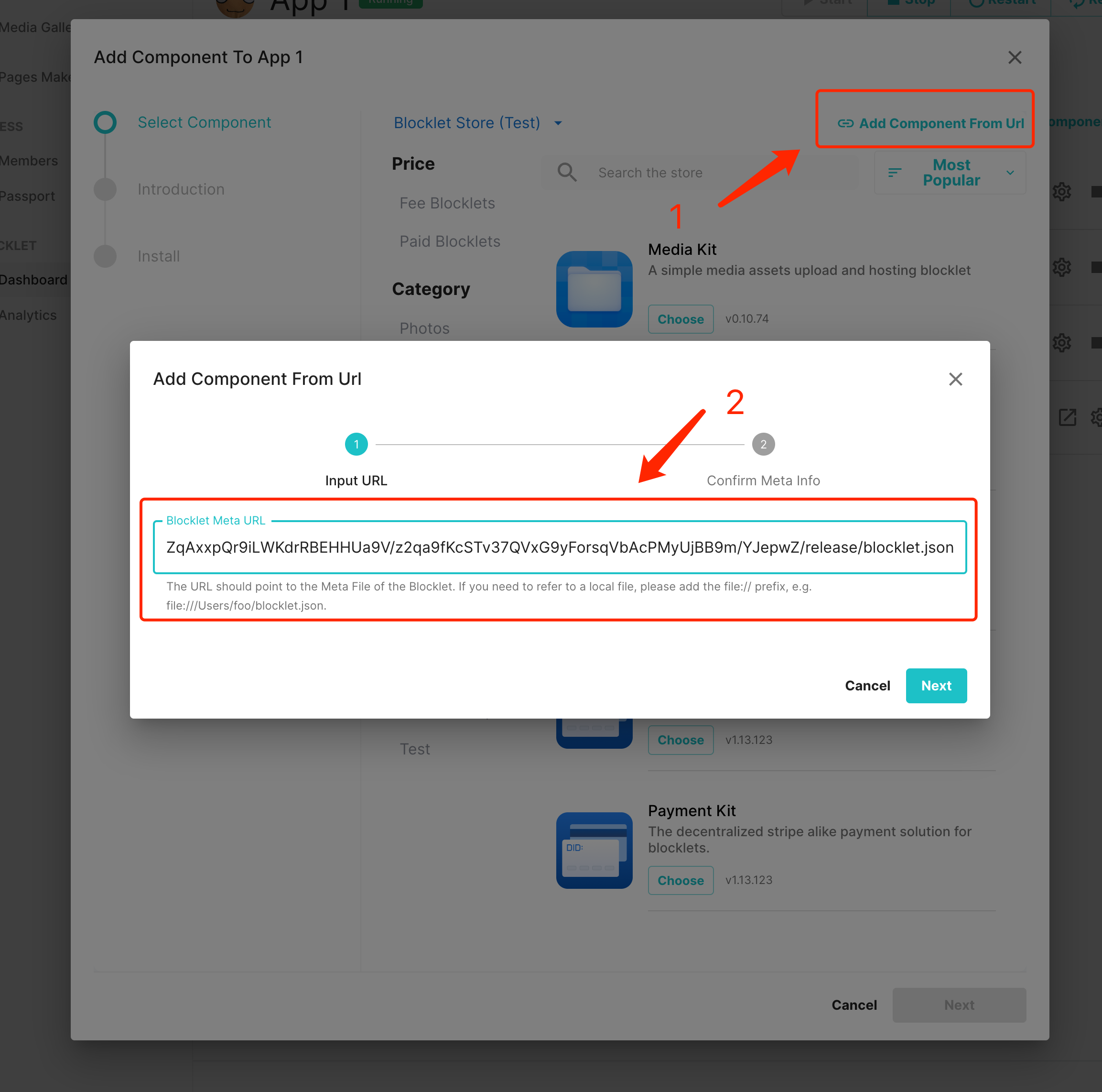 Step 3: Click "Add component from URL", paste the link you just copied, and click "Next"#