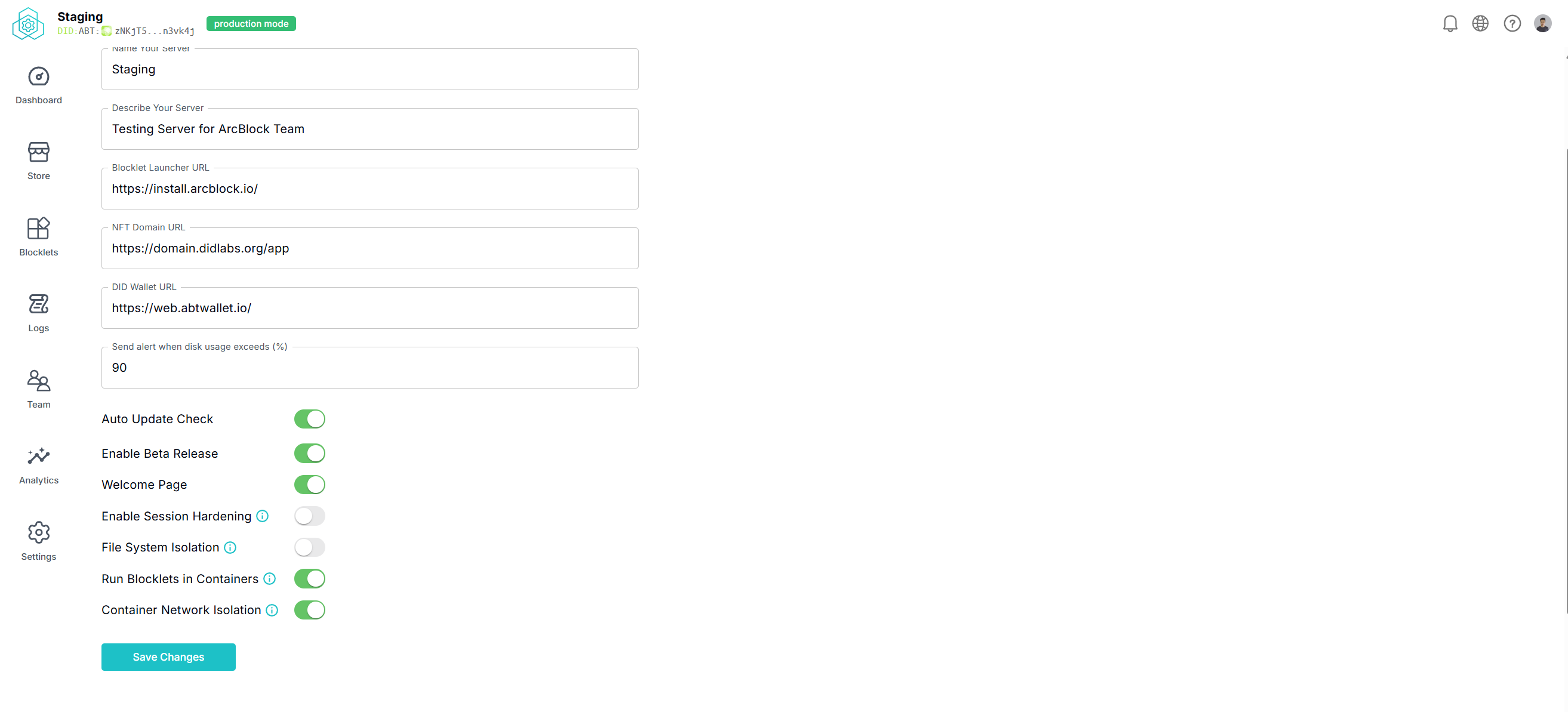 - Run Blocklets in Containers: Run each Blocklet in a Docker container.