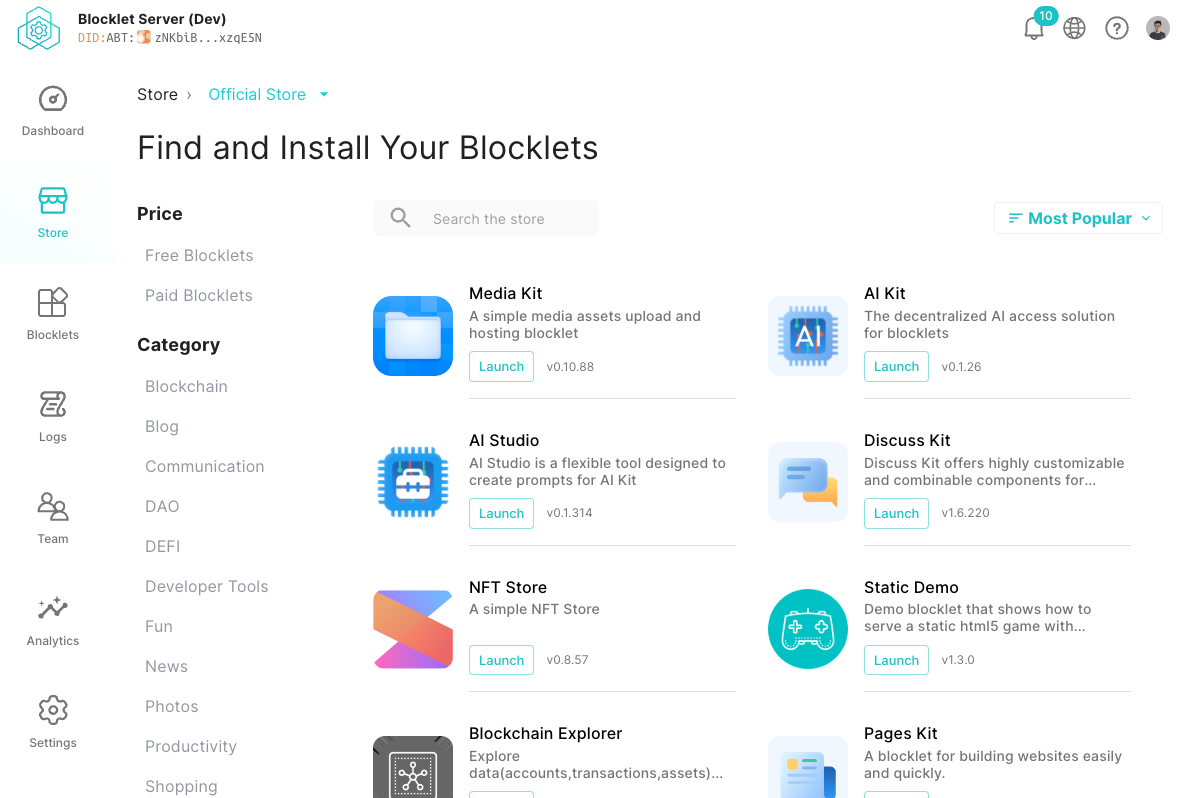 At this time, you can view the Blocklet in the Blocklet Store.#
