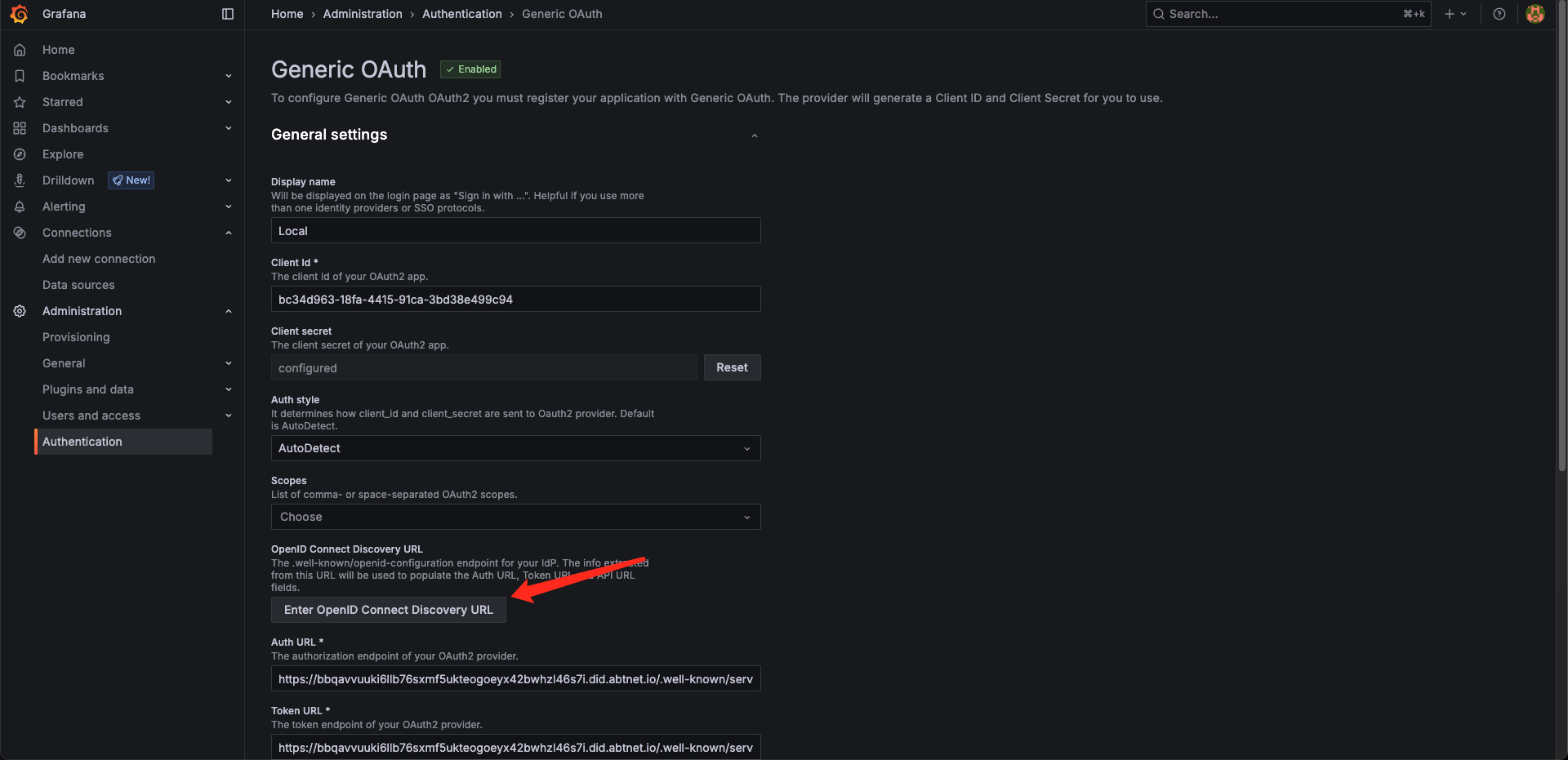 - 填写 OpenID Connect Discovery URL(通常为 https://your-oauth-server/.well-known/openid-configuration)