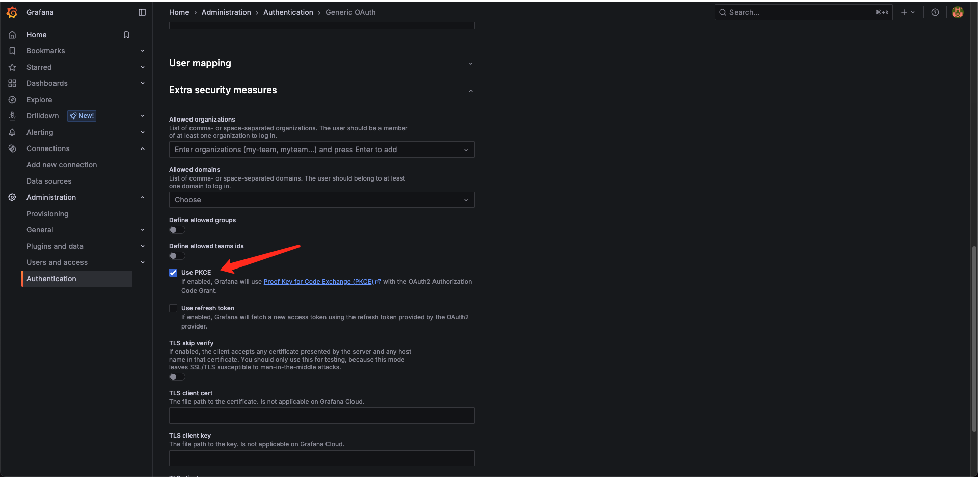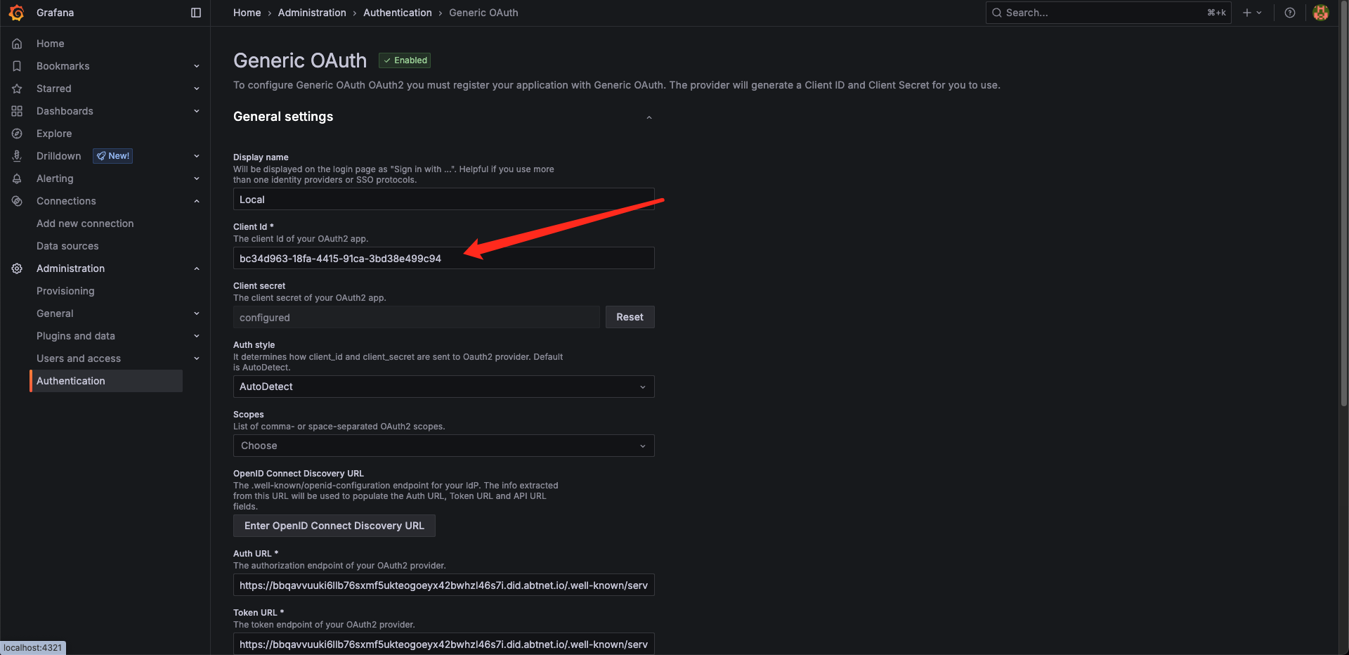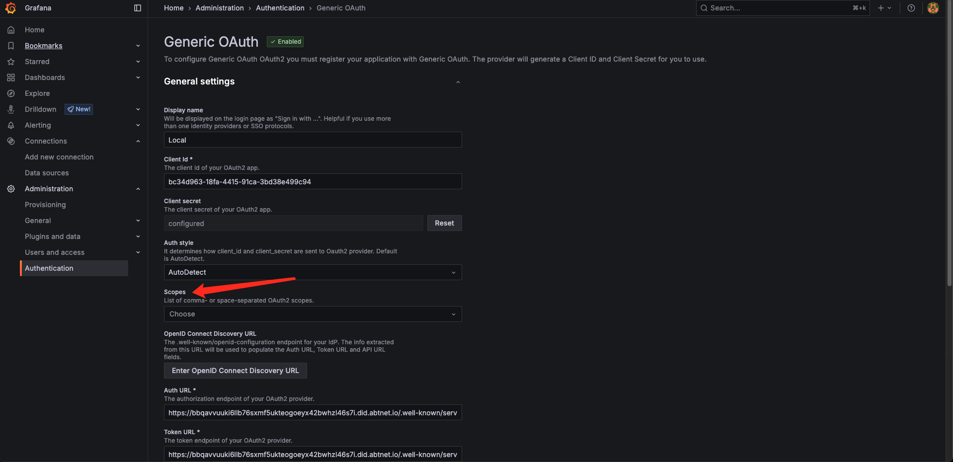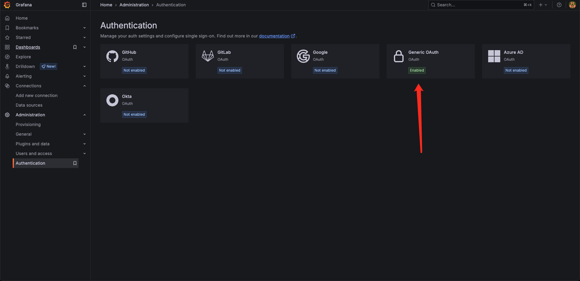 - 打开 Grafana 管理后台,进入“Authentication” -> “Generic OAuth”