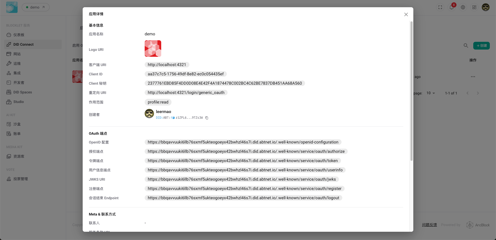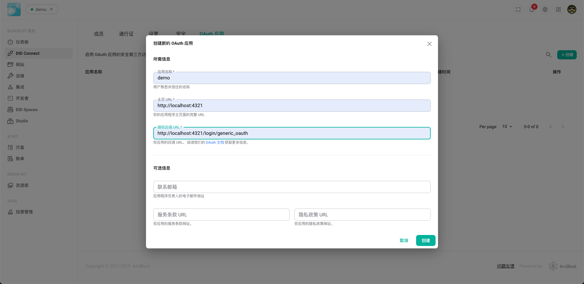 - 创建新的 OAuth 应用(did-connect => OAuth Apps)