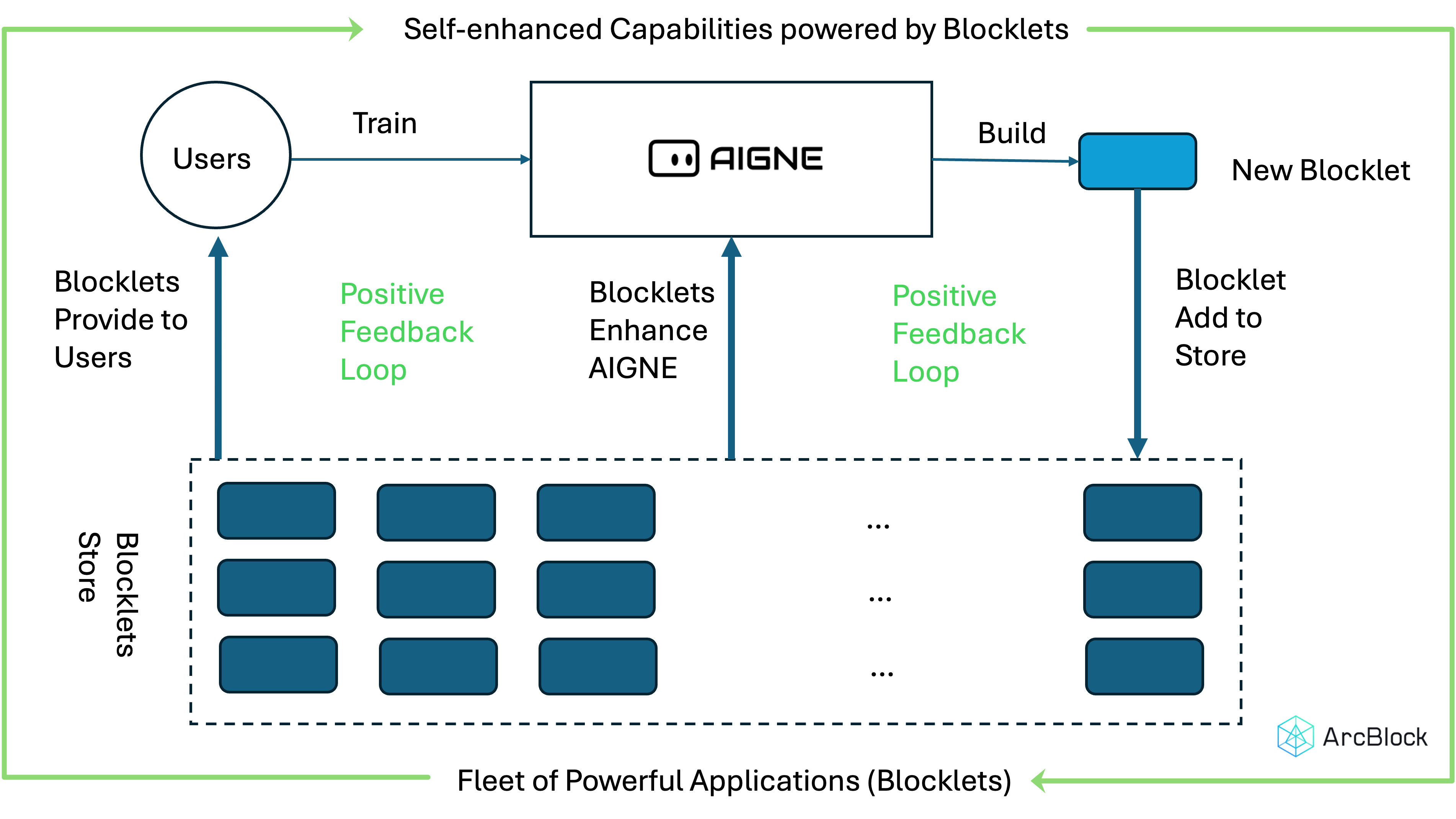ArcBlocklet 的开发者们应该都熟悉这张图,它展示了 AIGNE 如何利用 Blocklet Studio 和 Blocklet Store 形成飞轮效应。AIGNE 的用户可以创建许多应用并发布到 Store,从而反哺 AIGNE 的生态系统。事实上,任何 Blocklet 的开发者都可以通过集成 Blocklet Studio 和 Blocklet Store 创建自己的飞轮效应。