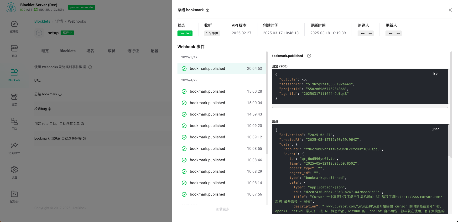 在 ArcBlock 的 Blocklet 生态系统中,Webhook 是一种强大的机制,能让您的 Blocklet 平台中发生的事件
