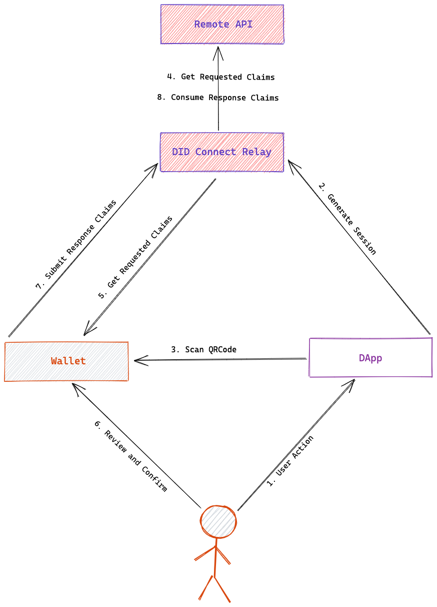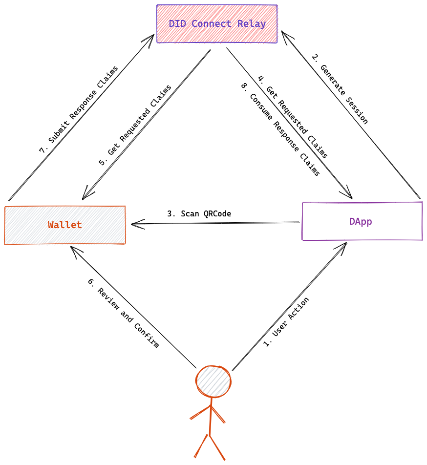 We can refer to the complete DID Connect process as a DID Connect session, and the parties involved in the session include