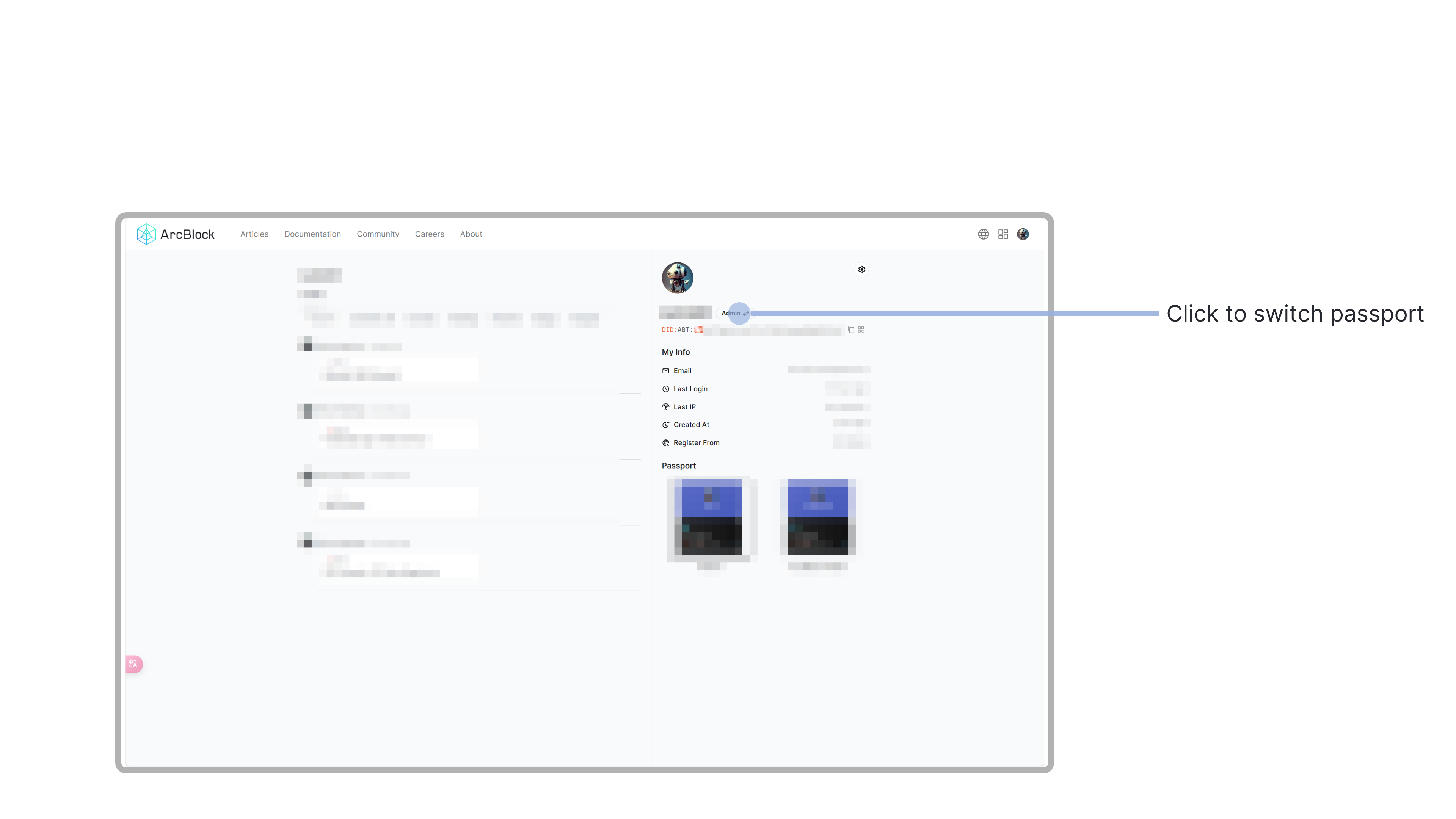 - Open any site (e.g. https://www.arcblock.io/en ), click on the person's avatar in the upper right corner