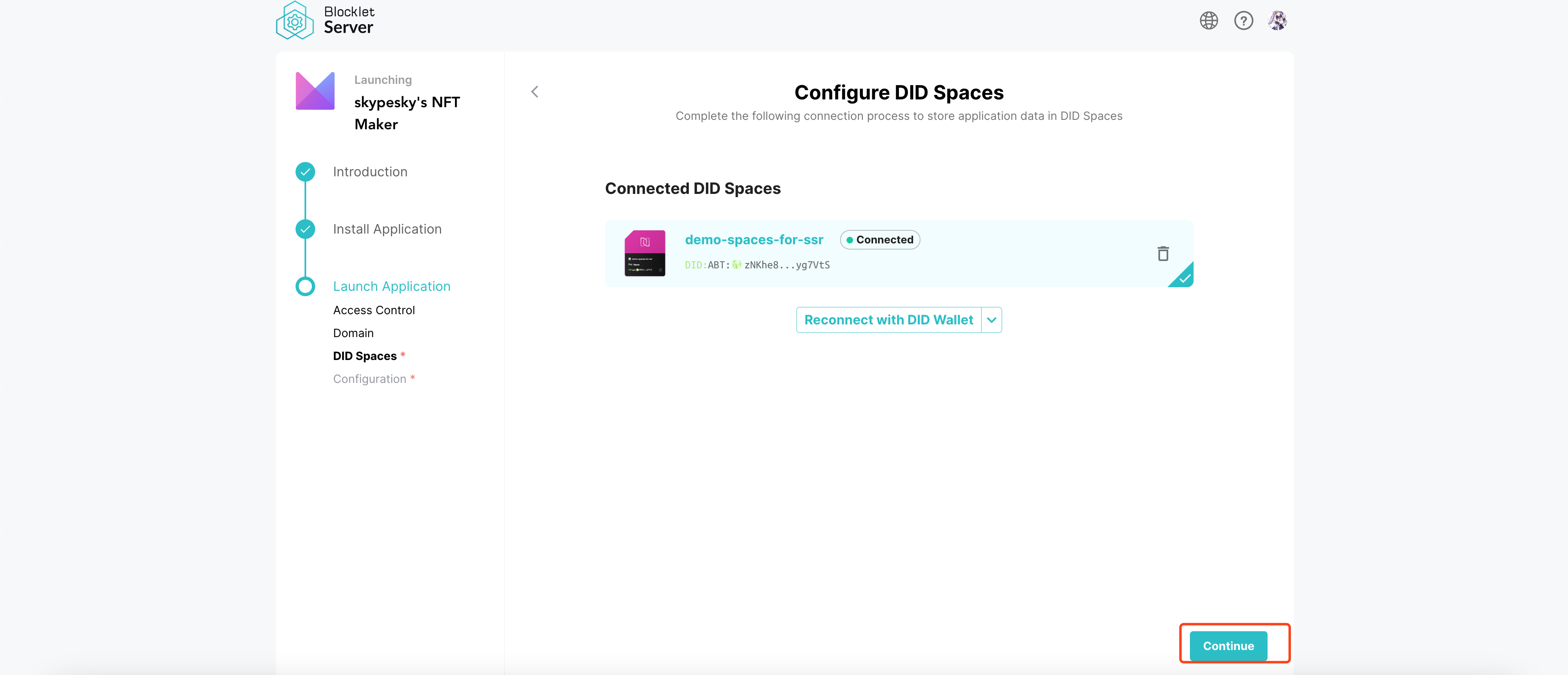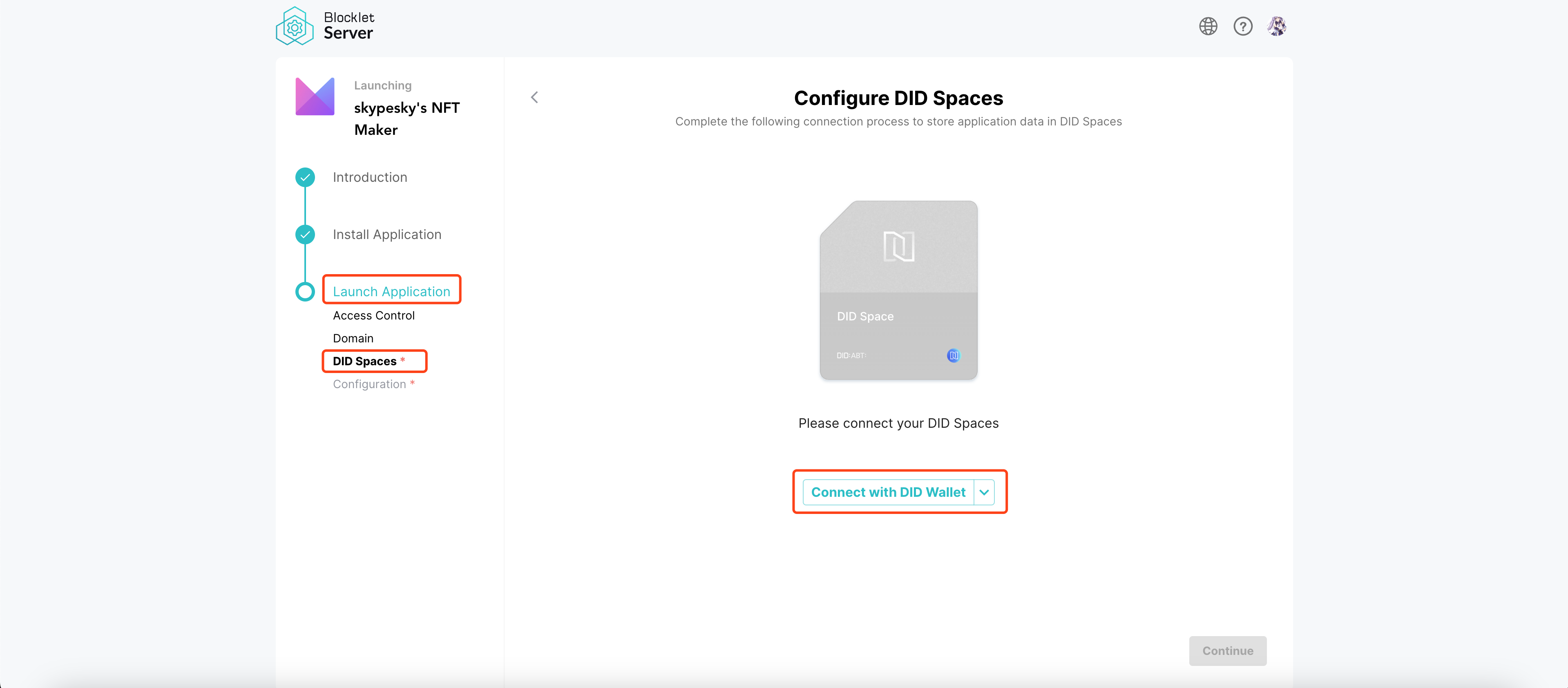 During the initial setup process, the system will prompt you to connect to a DID Space. Please select the DID Space to connect to: