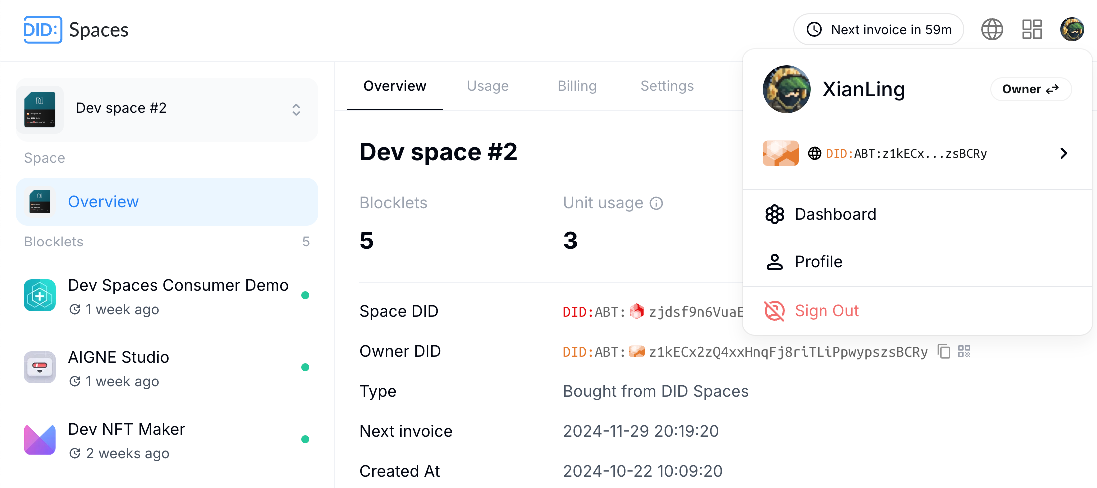 - Access to the DID Spaces Dashboard requires Owner or Admin permissions.