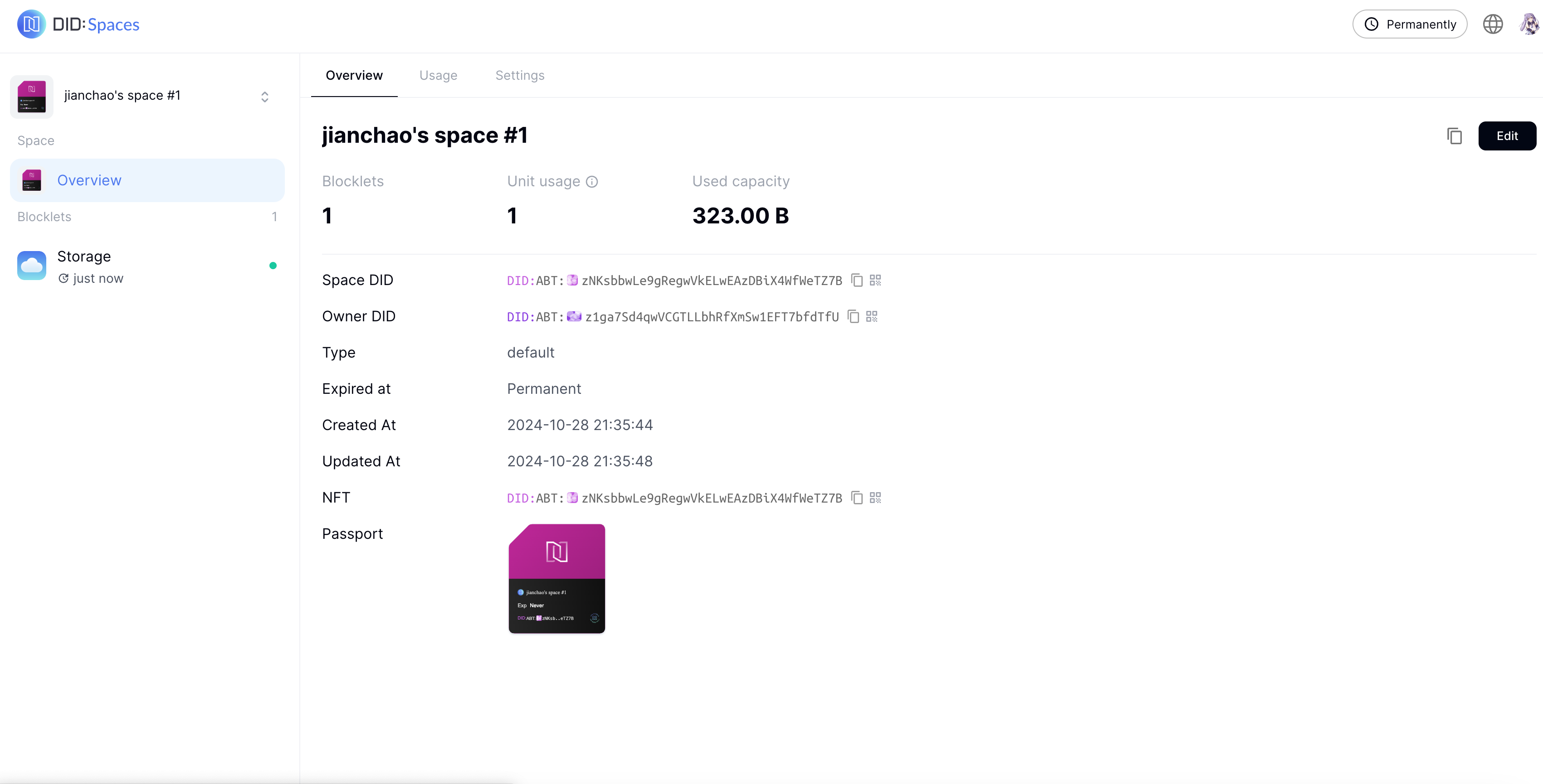 Once created, you have a functional DID Space that is decentralized and under your exclusive control.
