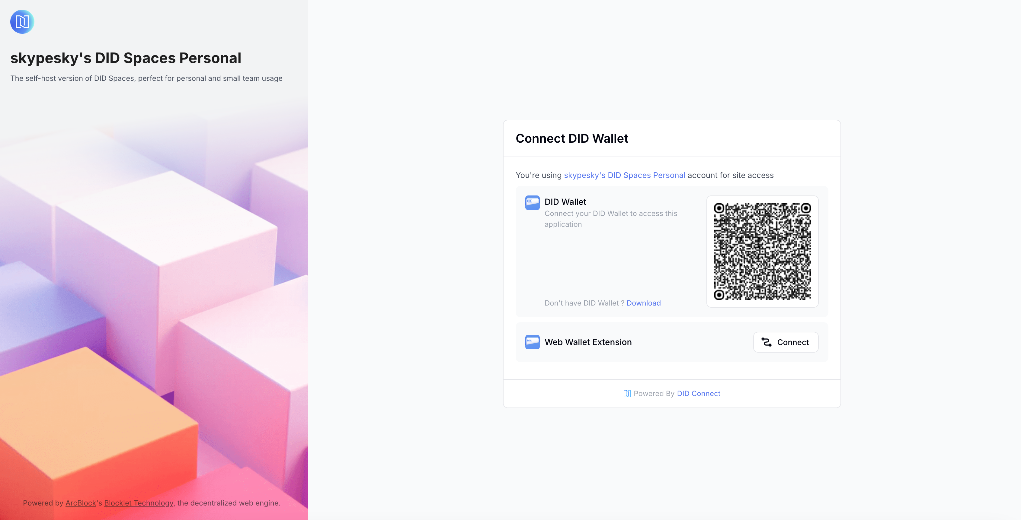 Follow the installation guide to complete the installation of your personal DID Space. Upon successful installation, you will see the following page: