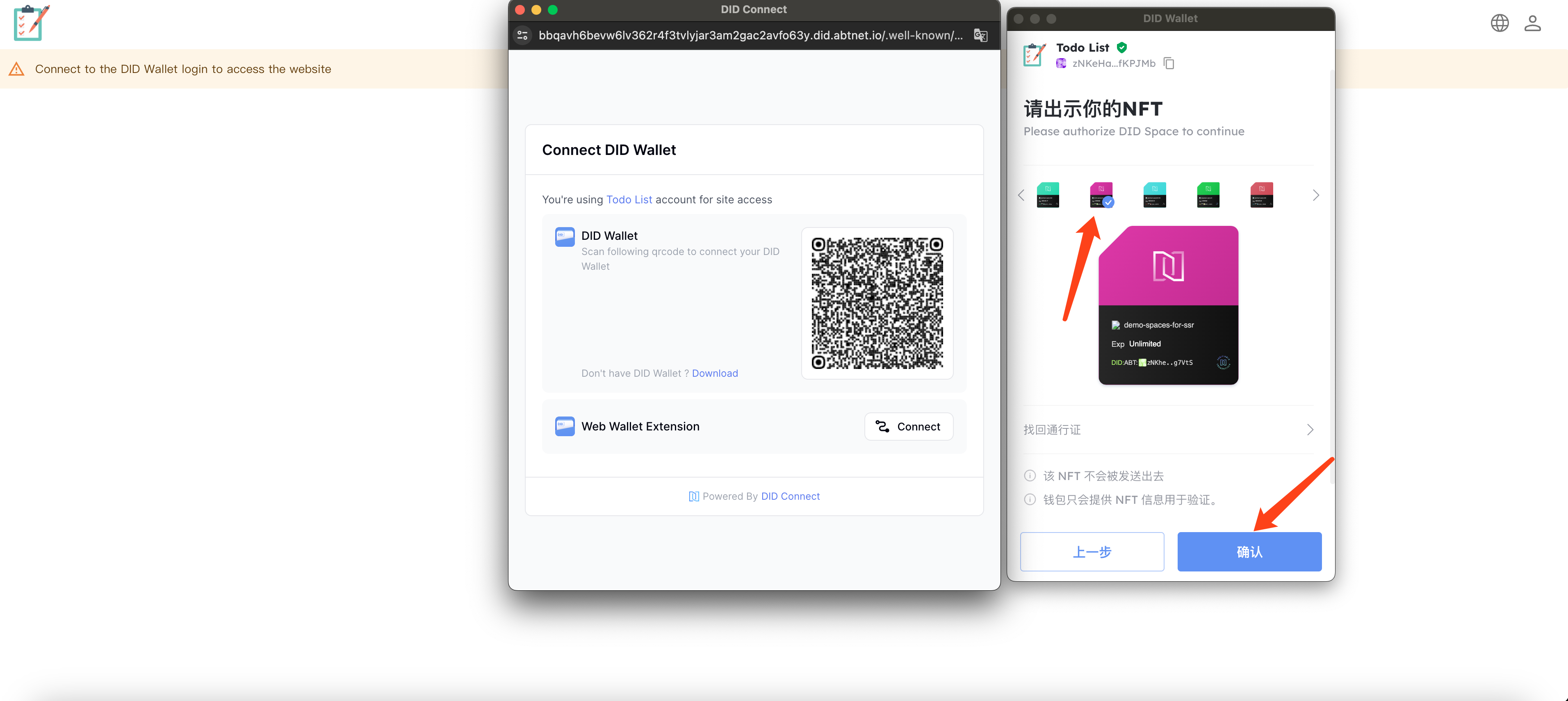 Connecting to a DID Space is required upon initial login to grant the application read and write access.