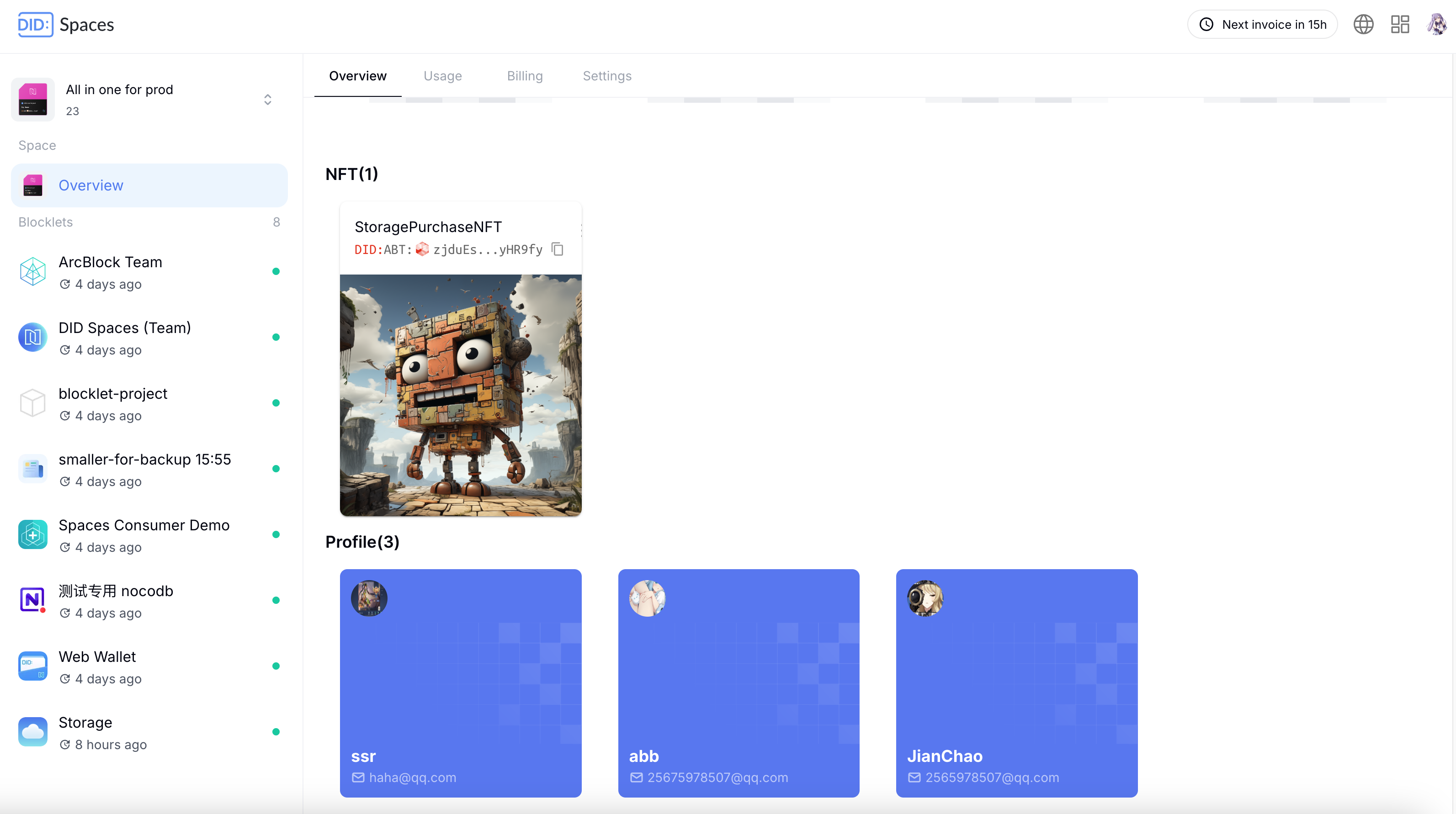 在新版本中,我们将为您个性化展示已存储在您DID Space上的 NFT、护照和 Profile。他们会展示在 Space 的 Overview 页面: