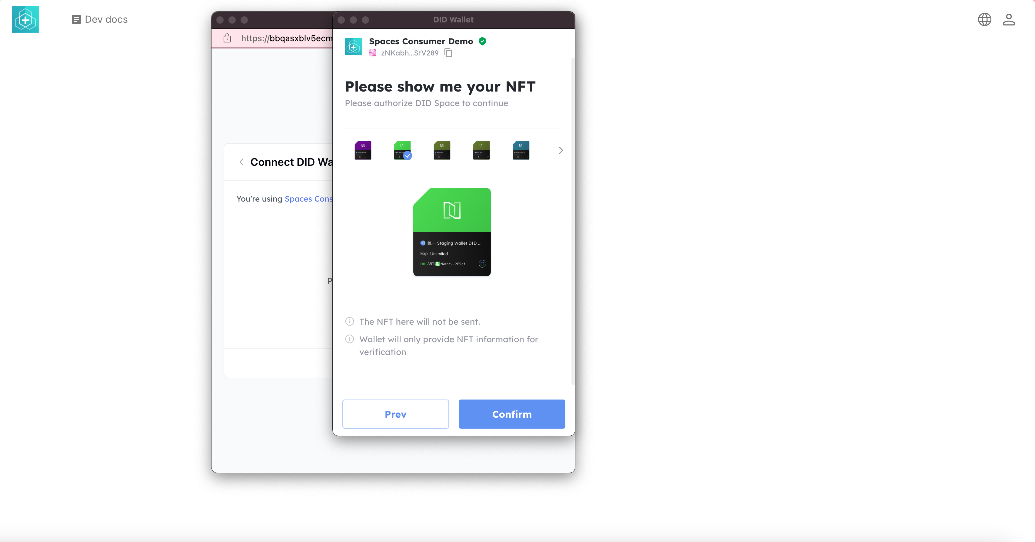 当用户首次登录您的应用时,必须出示其个人的 DID Space NFT 以连接到他们的 DID Space: