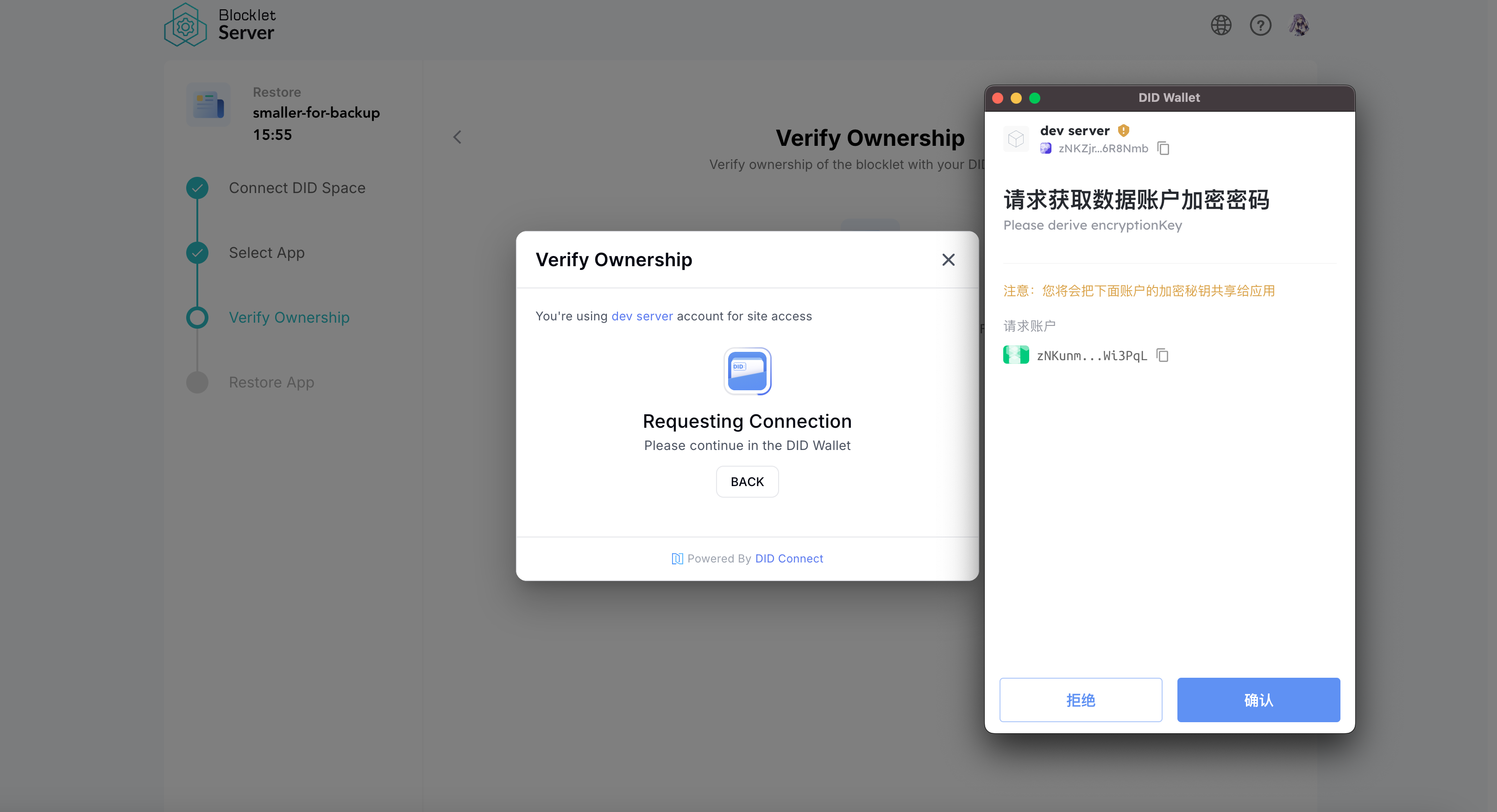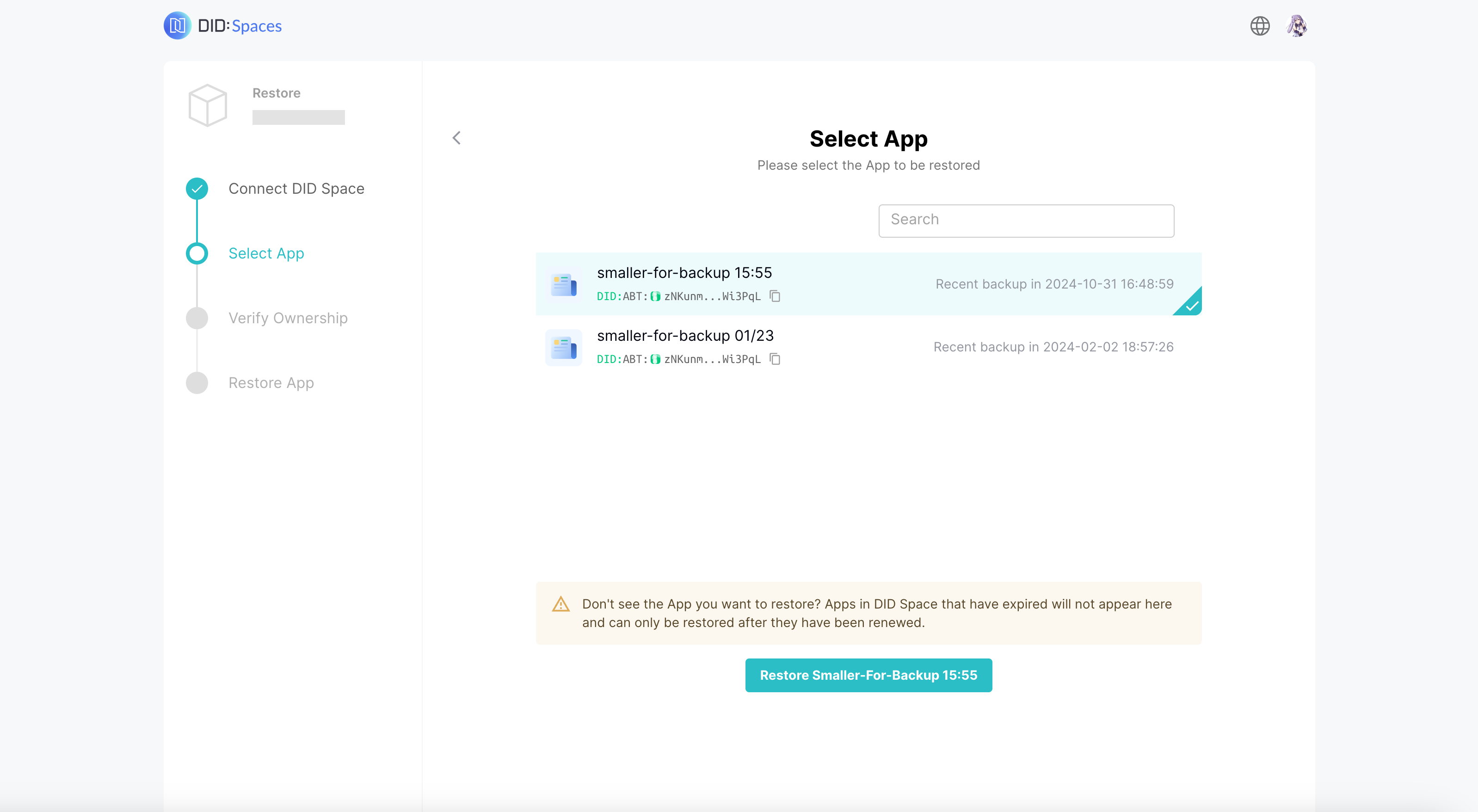 - 您已经将应用备份到 DID Spaces,并且您是这个应用的 Owner