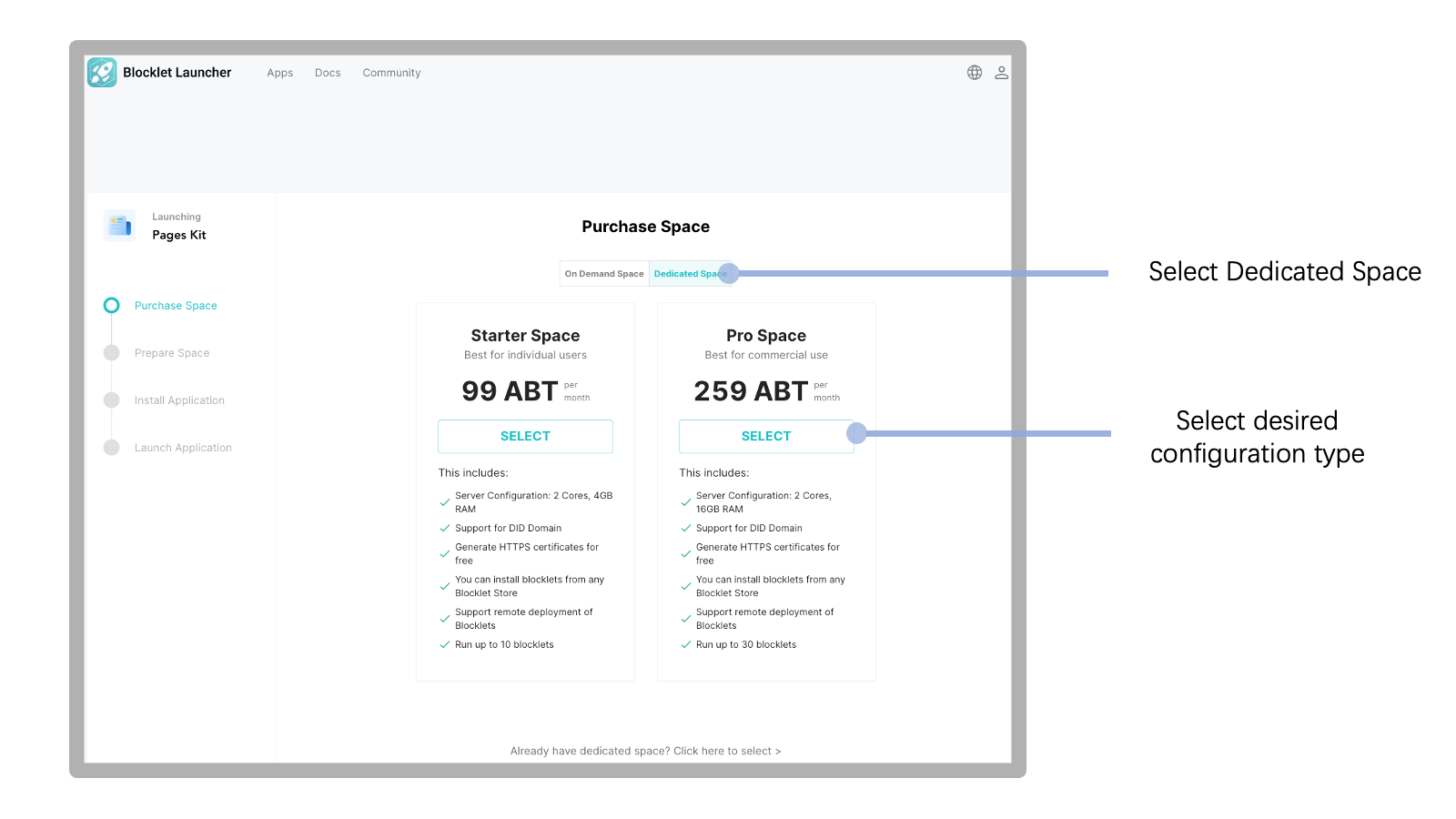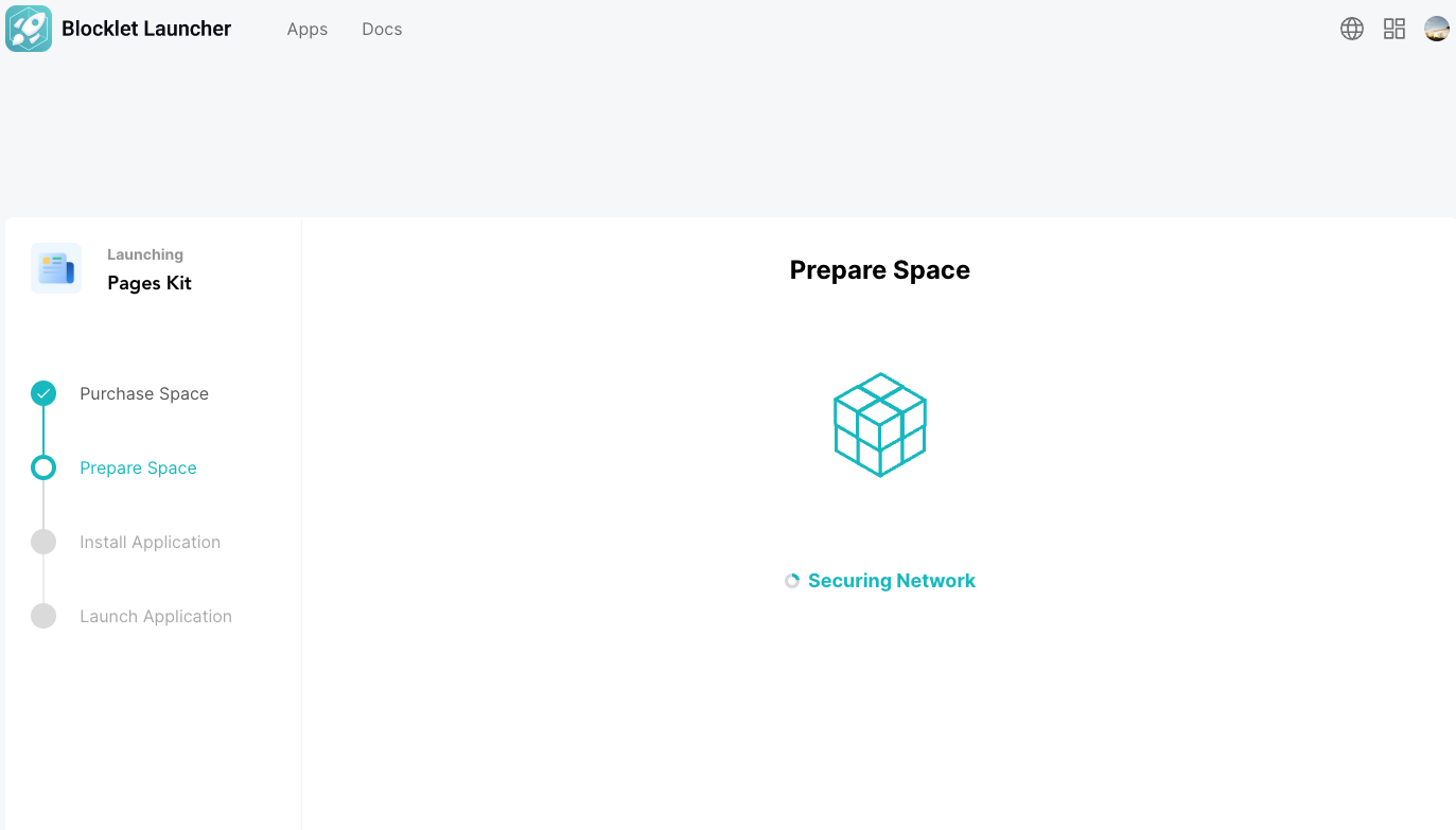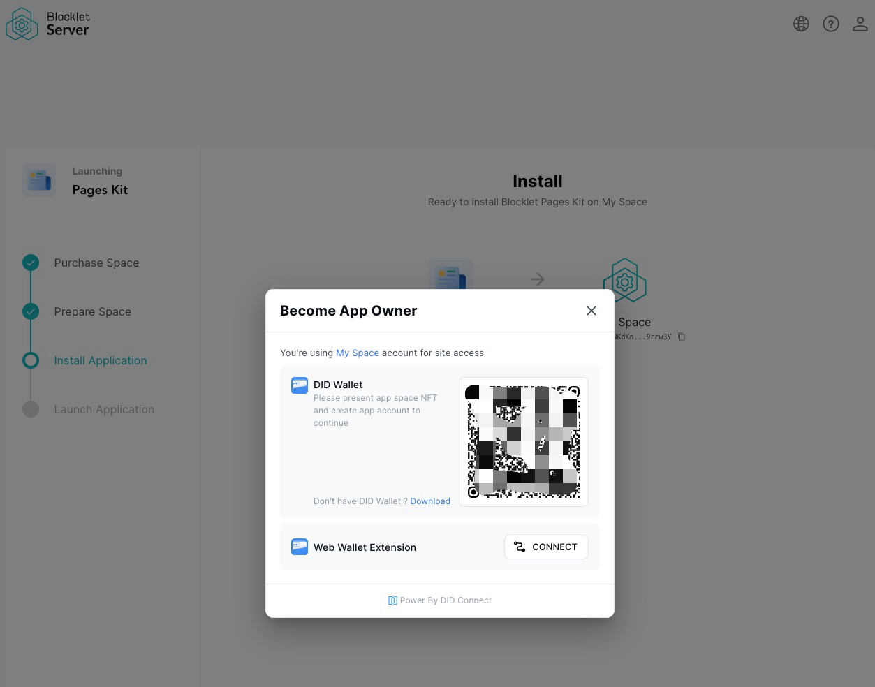 After preparing the dedicated space, it will automatically redirect to the newly launched Blocklet installation page.