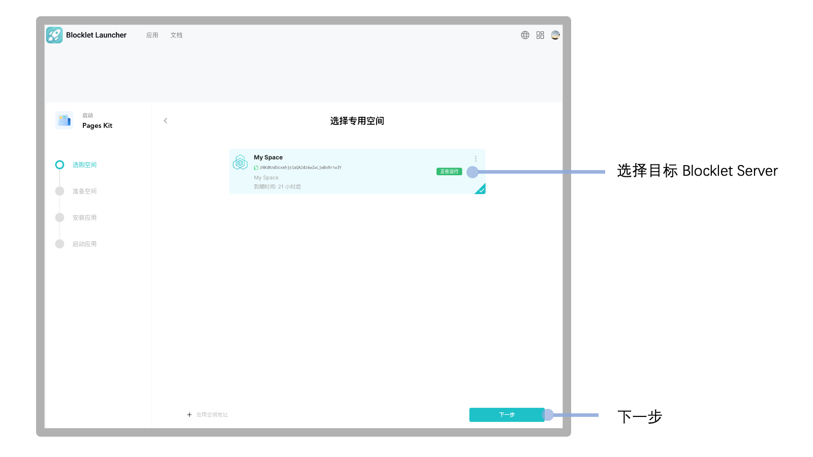 Blocklet Launcher 支持将应用安装在已有的 Blocklet Server 上,无论是在自己服务器上启动的还是在 Blocklet Launcher 上购买的专用空间。