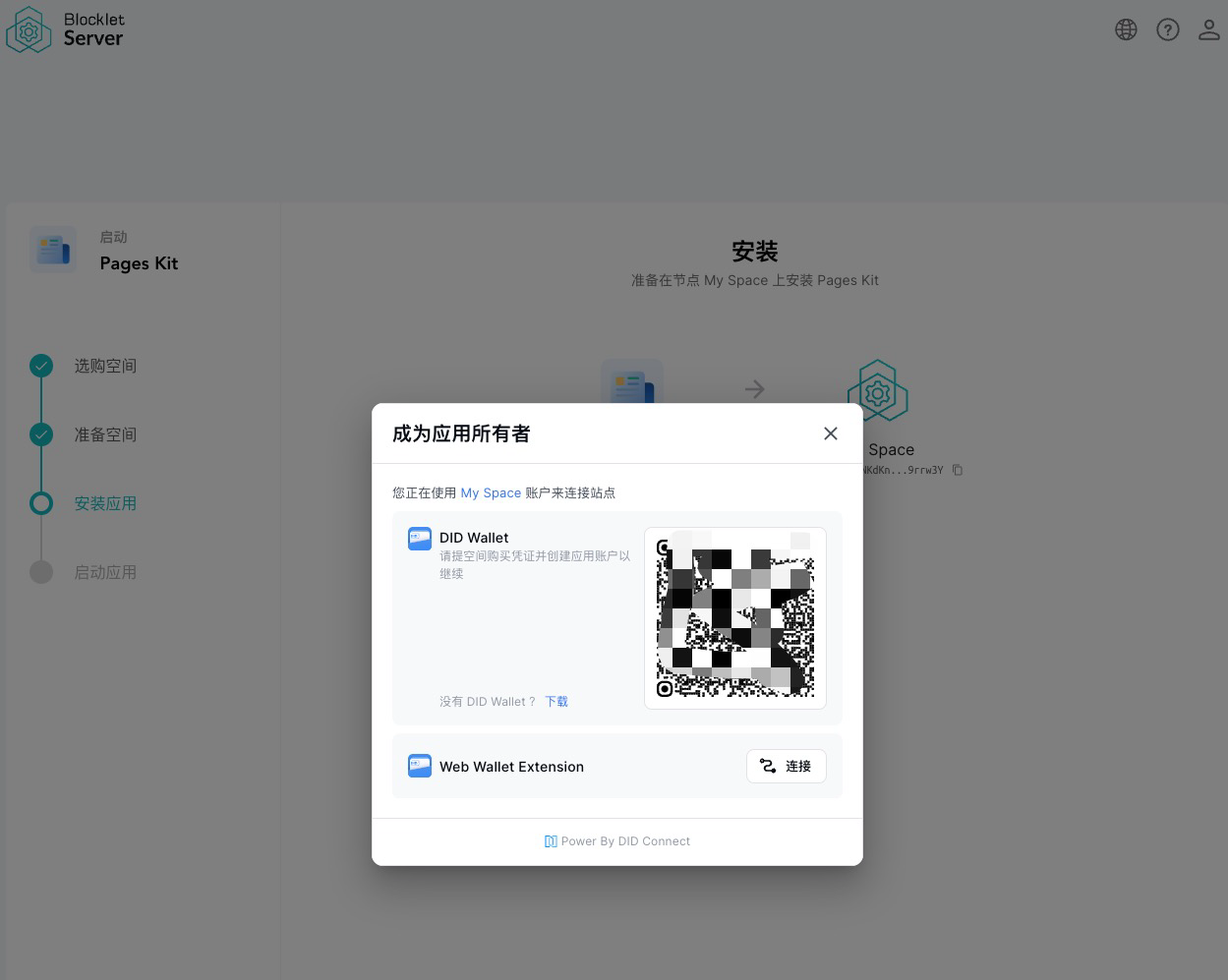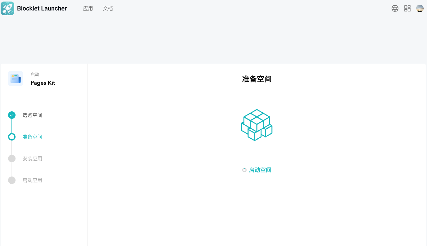 准备好专用空间后会自动跳转到新启动的安装 Blocklet 页面。