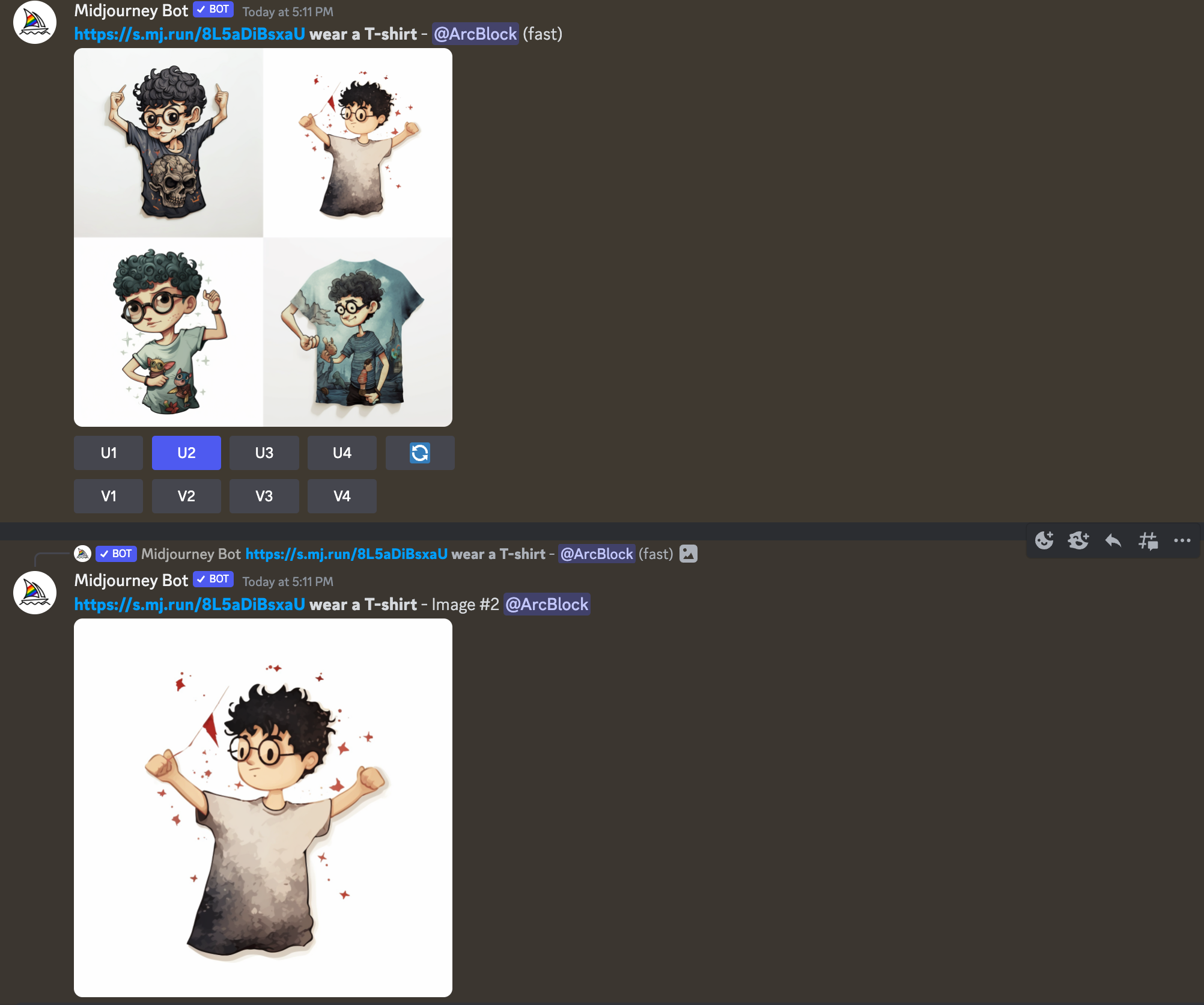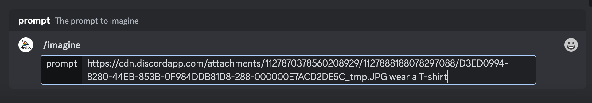 Enter /imagine, and copy the link in, enter a space and enter an additional prompt, let's change the picture to a T-shirt here