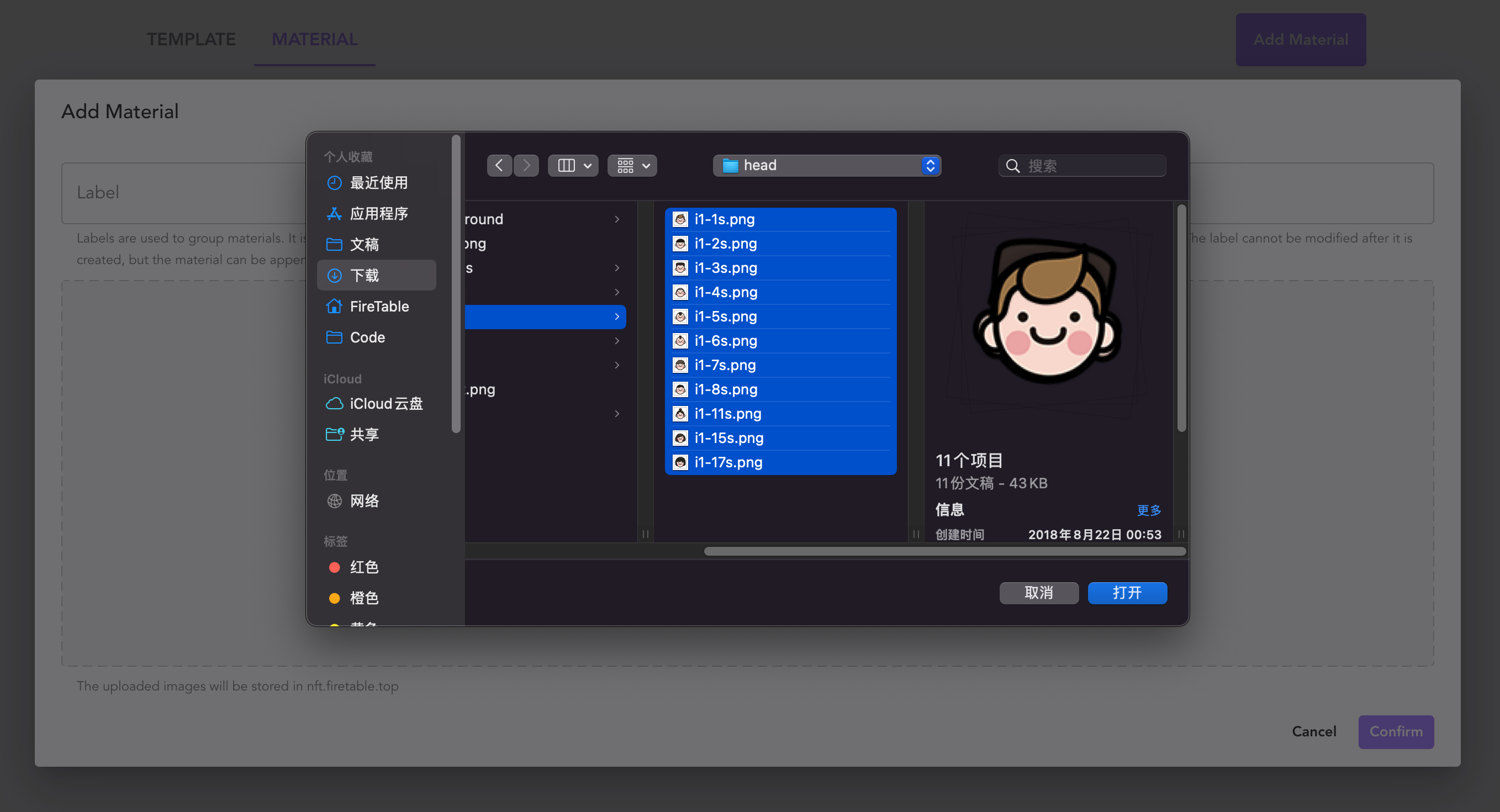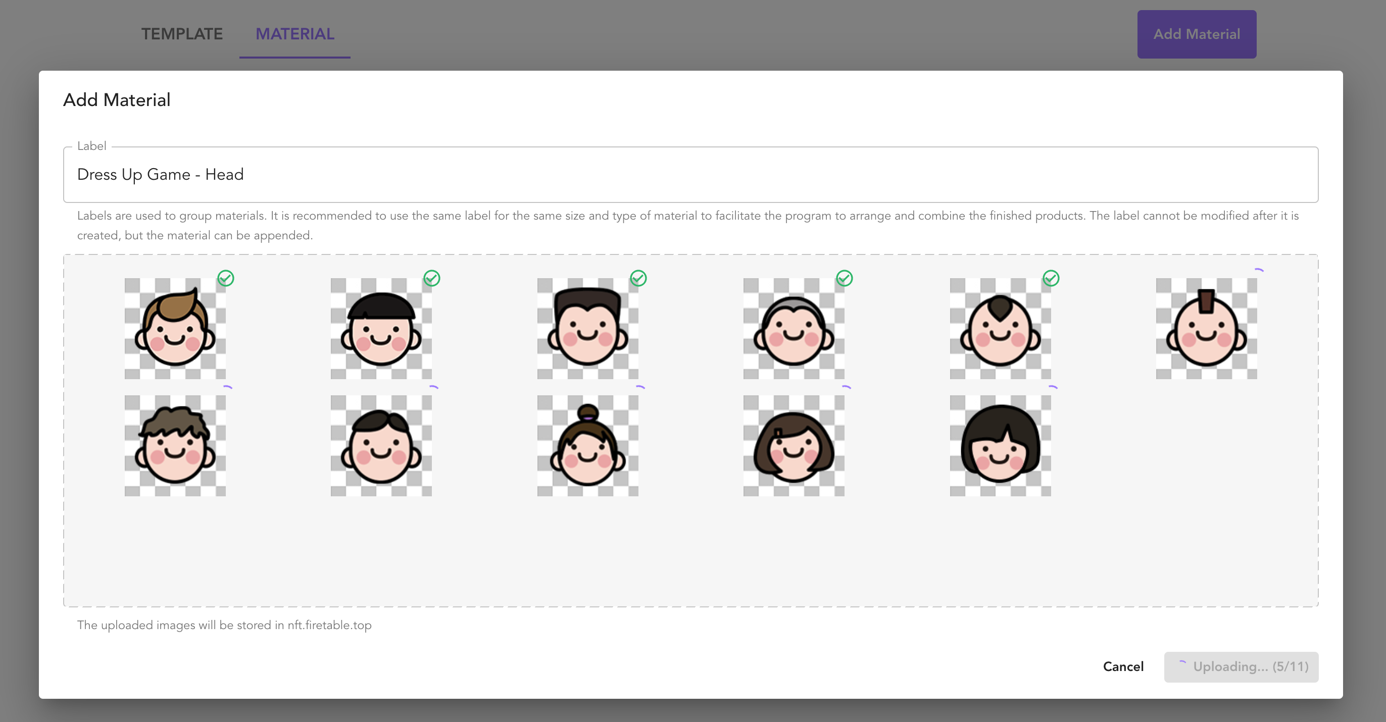 NFT Blender 提供素材管理能力,上传素材后可以在模板中绑定使用