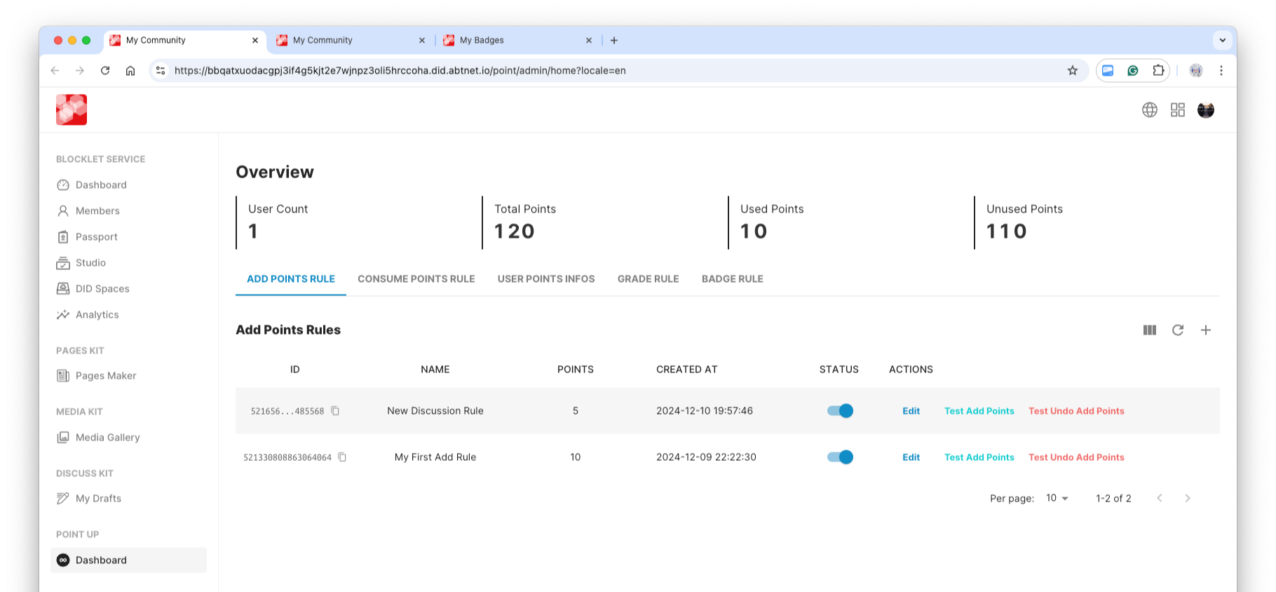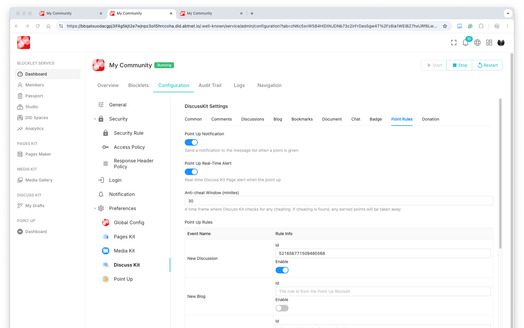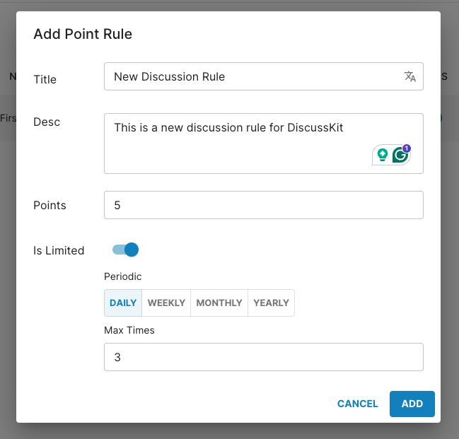 Then you can use the points rules in Point Up in a configurable way, just by opening the DiscussKit configuration page